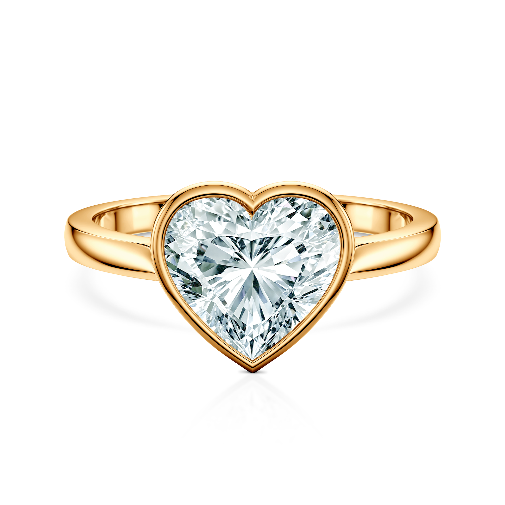 Pierścionek zaręczynowy z centralnie umieszczonym diamentem o masie 1,00 ct wysokiej czystości VS2/G, o szlifie serce. Wykonany z 14-karatowego żółtego złota (próba 0,585).