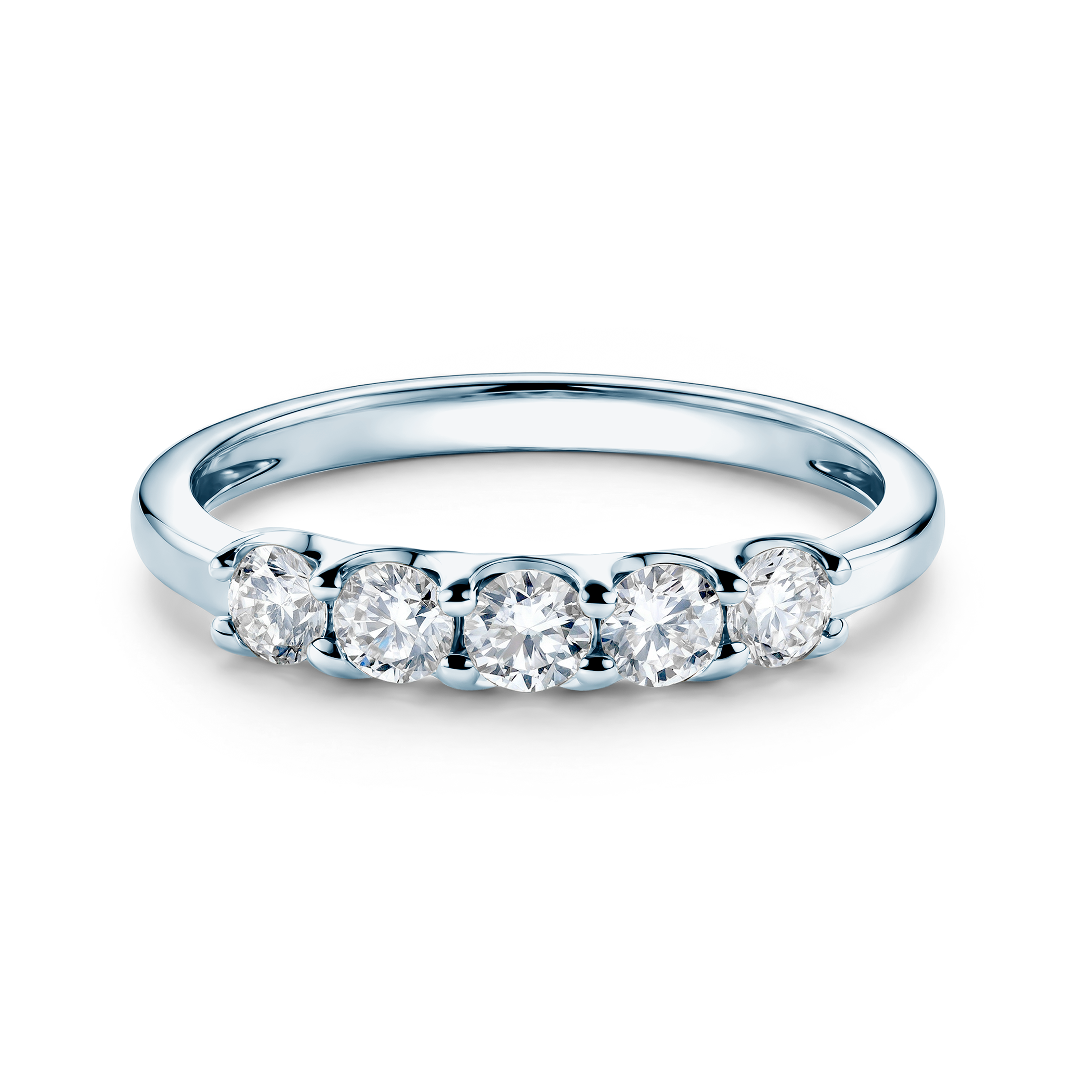 Pierścionek wykonany z białego złota, ozdobiony diamentami o łącznej masie 0,5ct.