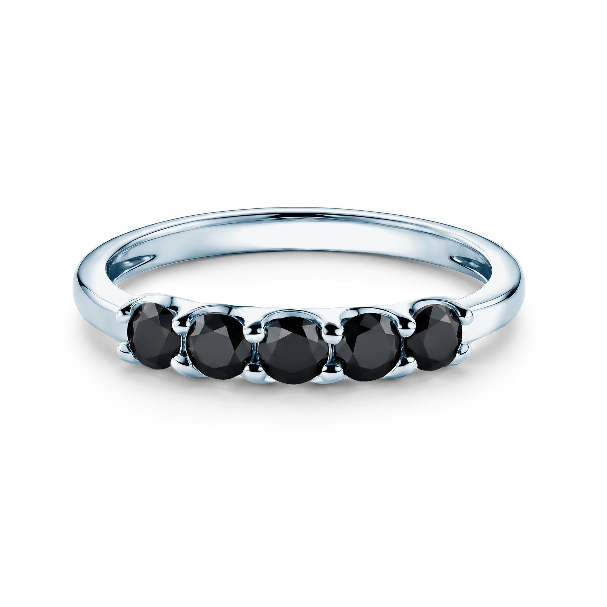 Pierścionek wykonany z białego złota, ozdobiony czarnymi diamentami o łącznej masie 0,60ct.