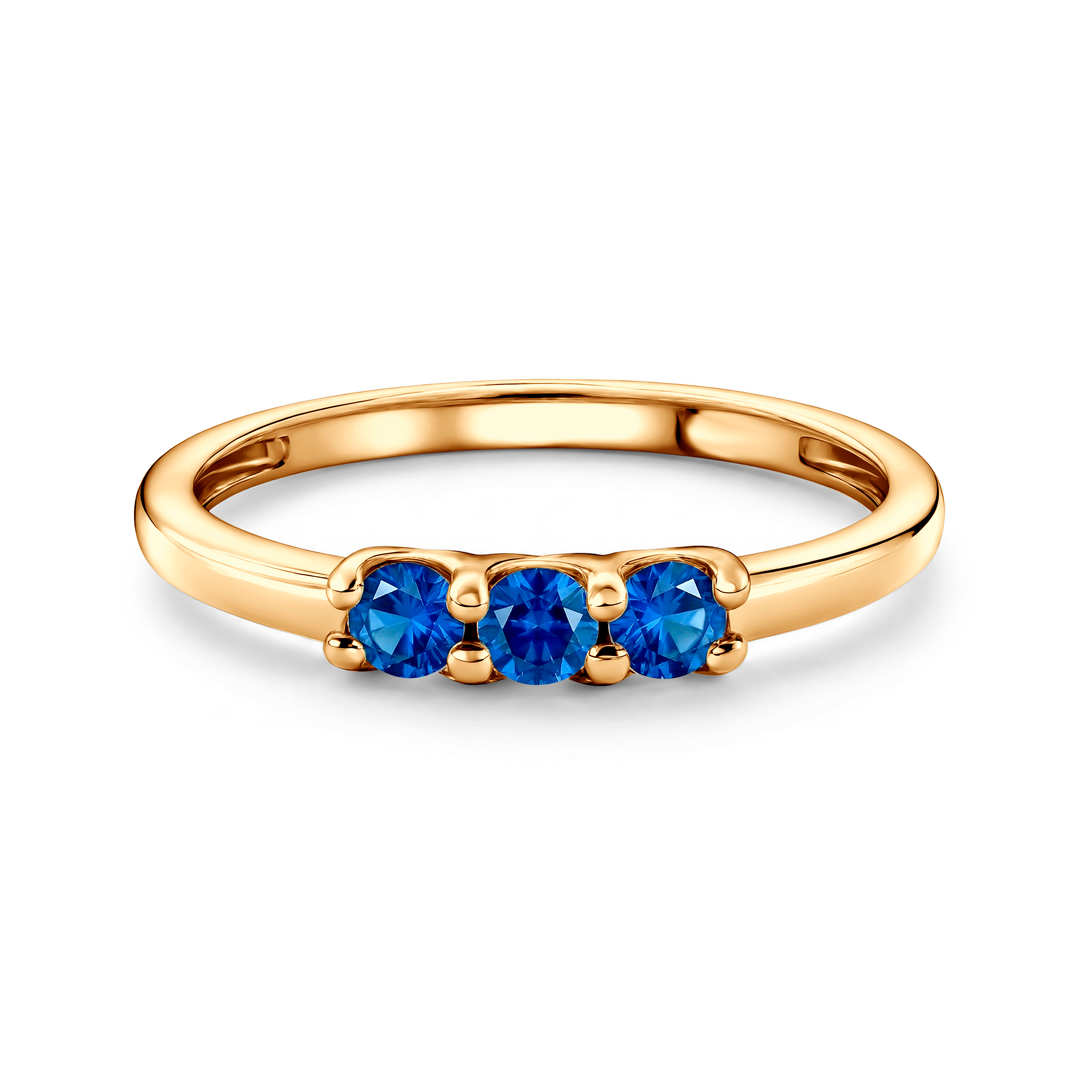 Pierścionek wykonany z żółtego złota, ozdobiony niebieskimi szafirami o łącznej masie 0,45ct.