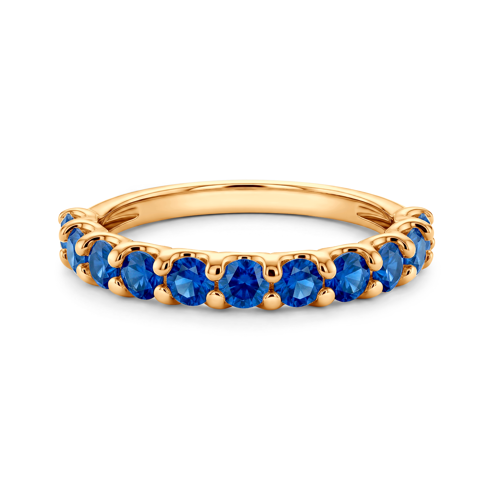 Pierścionek wykonany z żółtego złota, ozdobiony niebieskimi szafirami o łącznej masie 1,65ct.