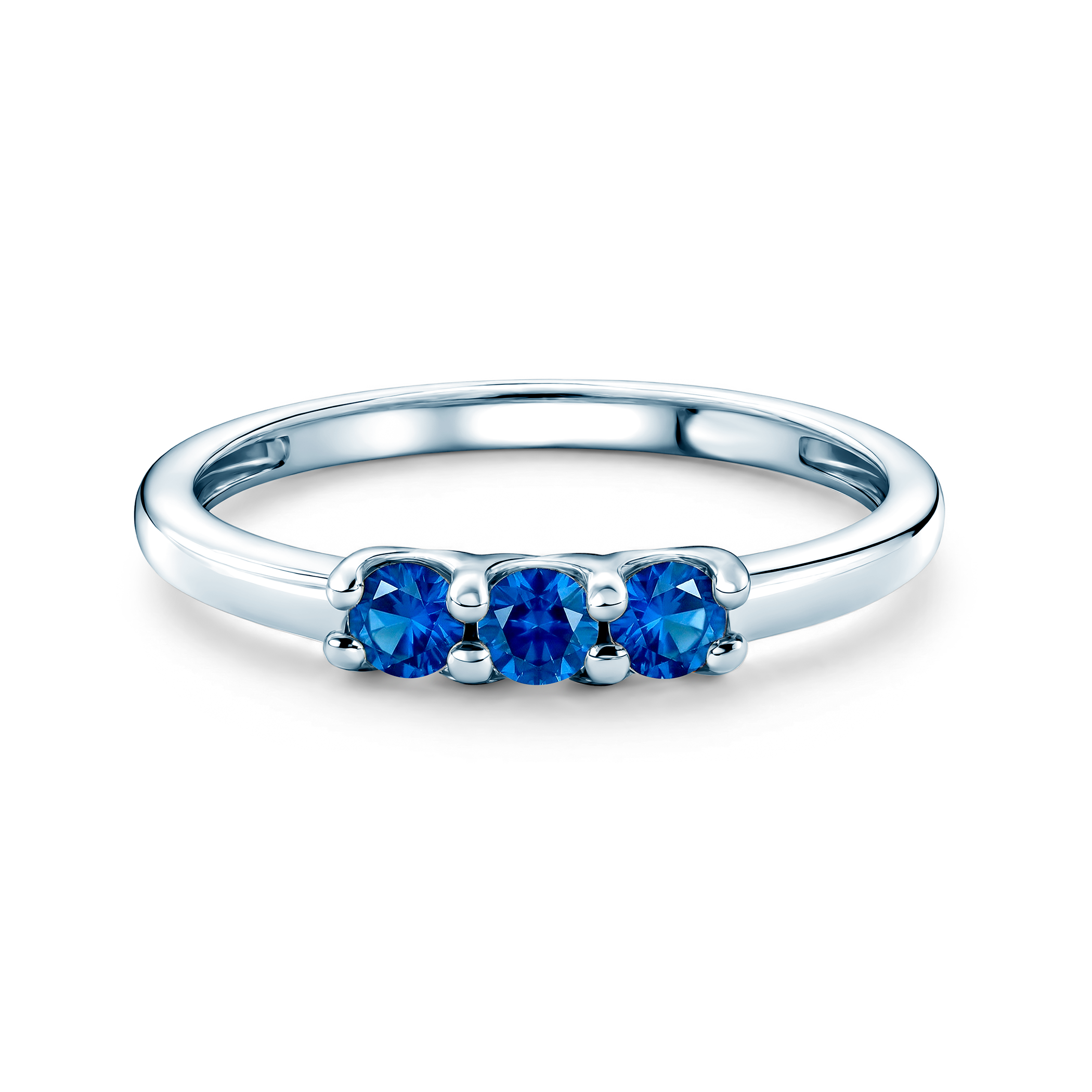 Pierścionek wykonany z białego złota, ozdobiony niebieskimi szafirami o łącznej masie 0,45ct.