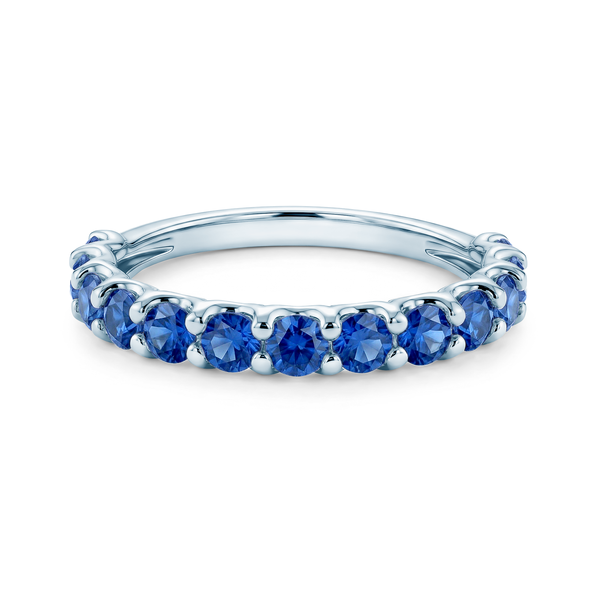 Pierścionek wykonany z białego złota, ozdobiony niebieskimi szafirami o łącznej masie 1,95ct.