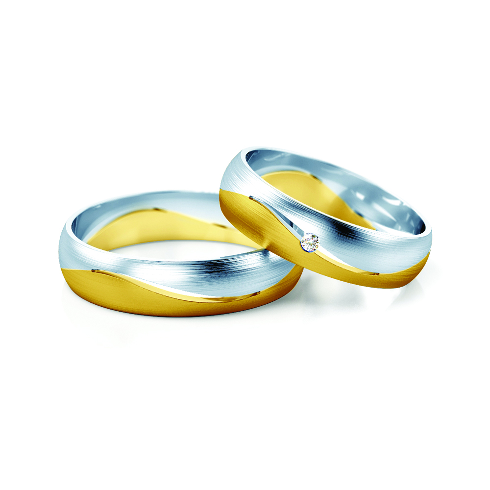 Obrączki ślubne wykonane z połączenia żółtego oraz białego złota (próba 0,333/0,585/0,750).