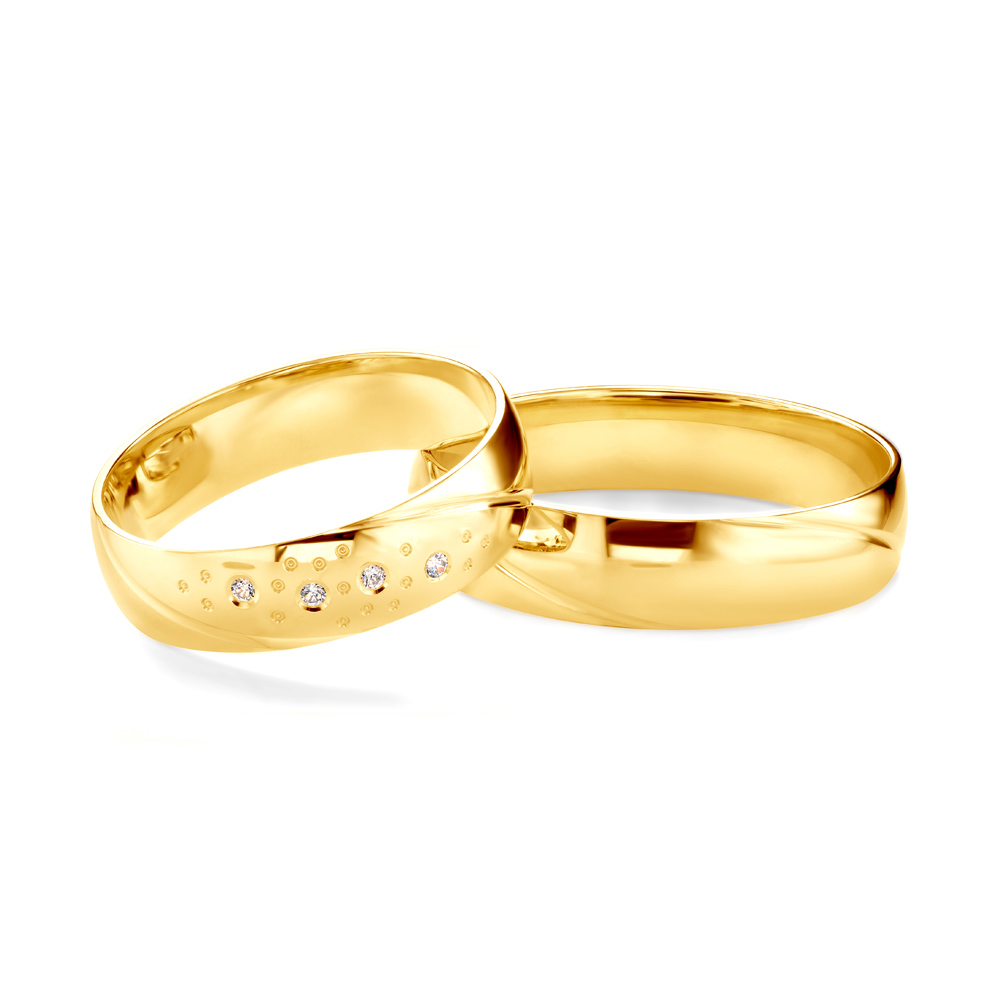 Obrączki ślubne wykonane z żółtego złota (próba 0,333/0,585/0,750).
