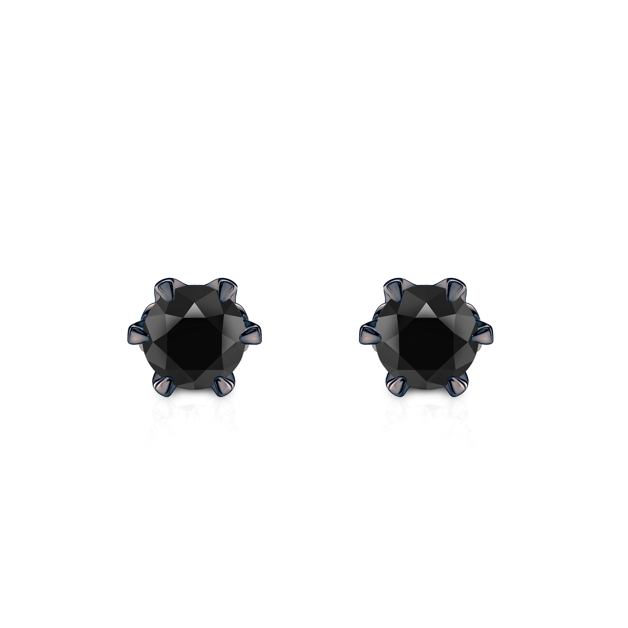 Kolczyki wykonane z 14-karatowego czarnego złota (próba 585). W kolczykach zostały osadzone 2 czarne diamenty o szlifie brylantowym z łączną masą 0,40 ct oraz 4 diamenty o wysokiej czystości SI2/H z łączną masą 0,06 ct.