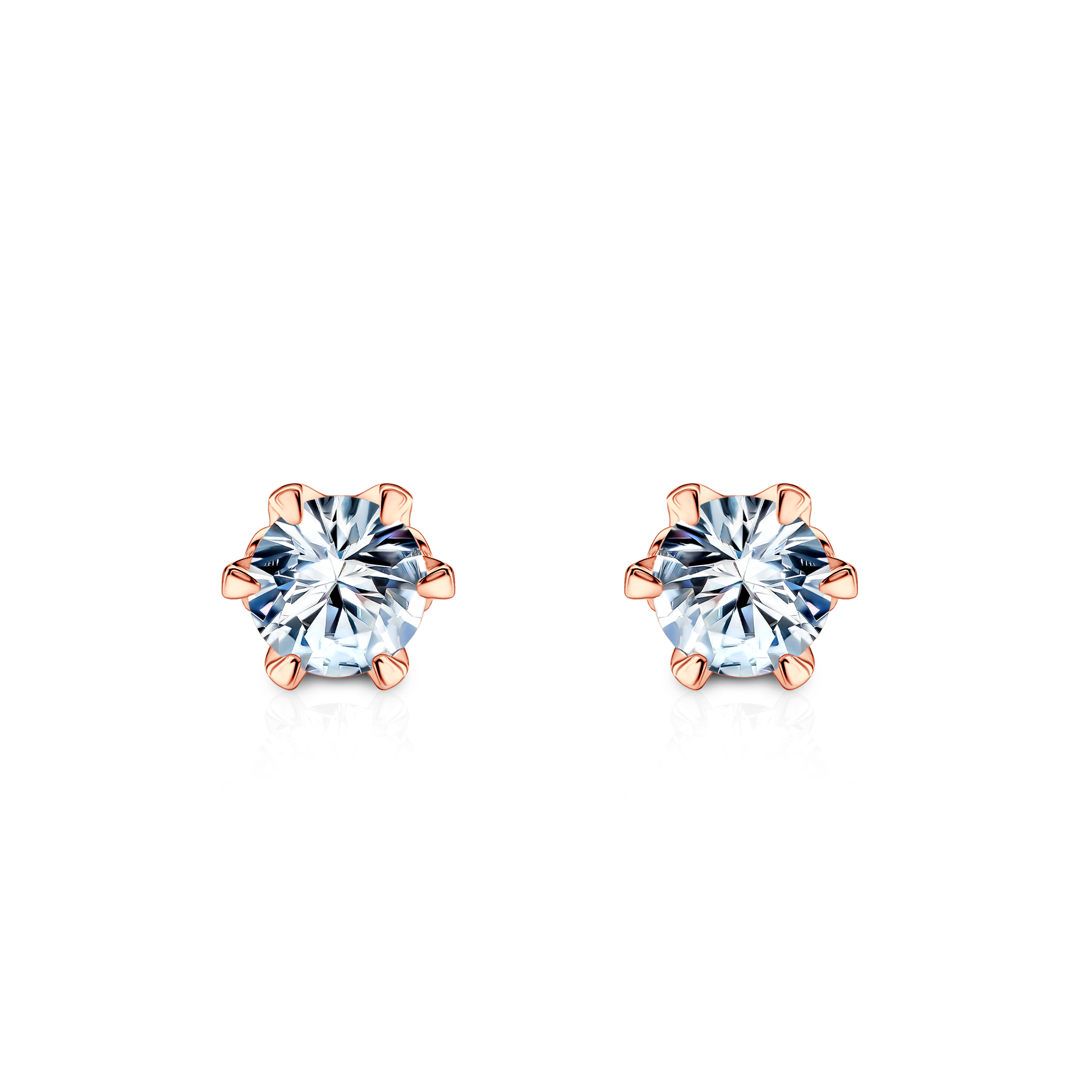 Kolczyki wykonane z 14-karatowego różowego złota (próba 585). W kolczykach zostały osadzone 2 białe szafiry o szlifie brylantowym z łączną masą 0,40 ct oraz 4 diamenty o wysokiej czystości SI2/H z łączną masą 0,06 ct.