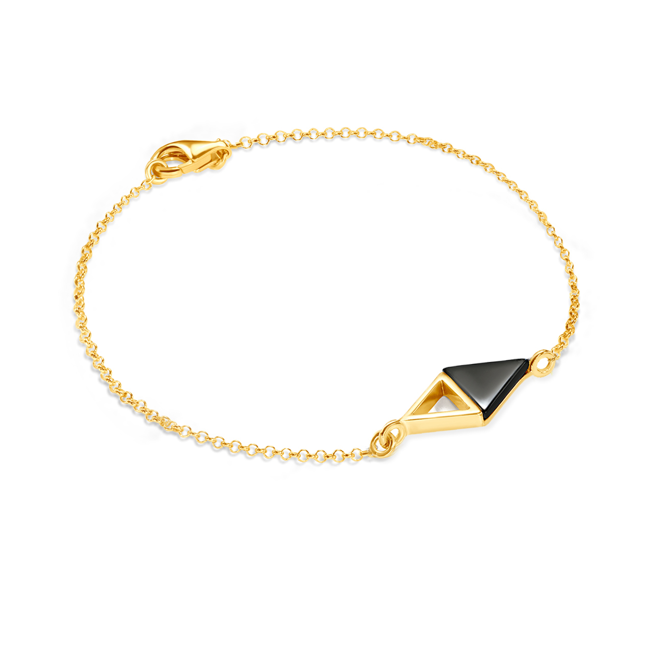 Bransoletka Savicki wykonana ze srebra (próba 925) pozłocona 22-karatowym żółtym złotem. W bransoletce został umieszczony czarny onyks.