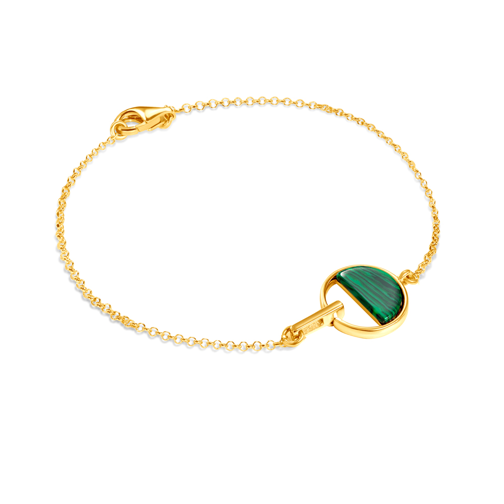 Bransoletka Savicki wykonana ze srebra (próba 925) pozłocona 22-karatowym żółtym złotem. W bransoletce został umieszczony malachit o głębokiej zieleni.