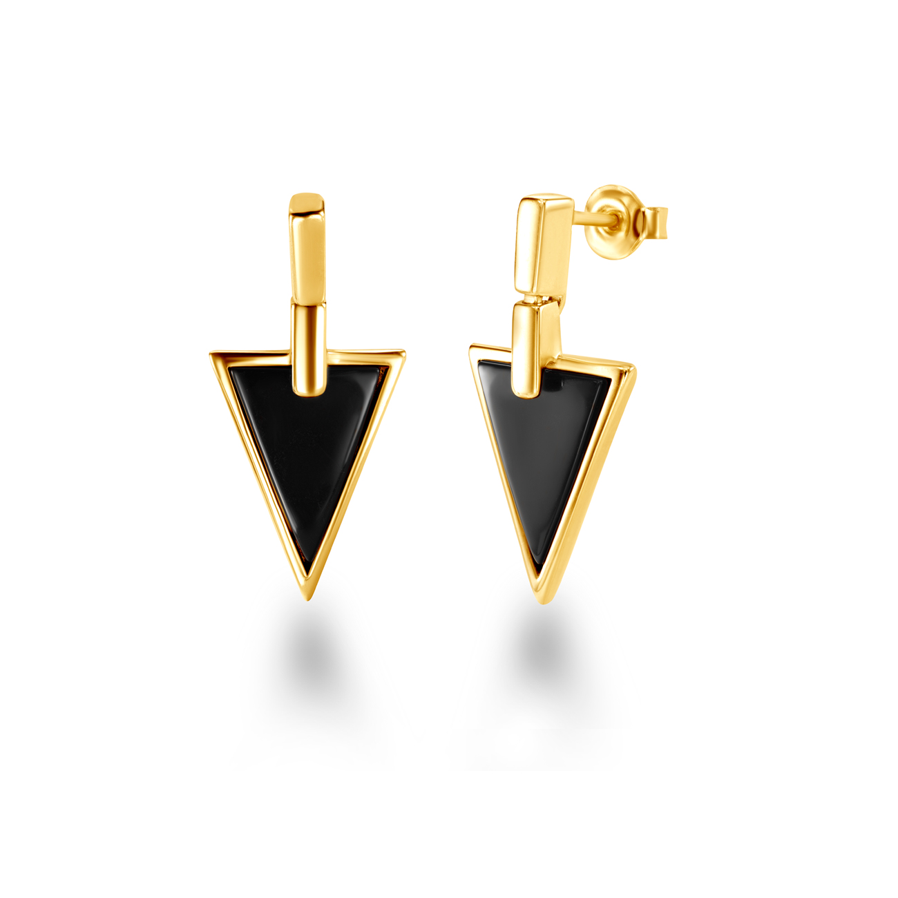 Kolczyki Savicki wykonane ze srebra (próba 925) pozłocone 22-karatowym żółtym złotem. W kolczykach zostały umieszczone dwa czarne onyksy.
