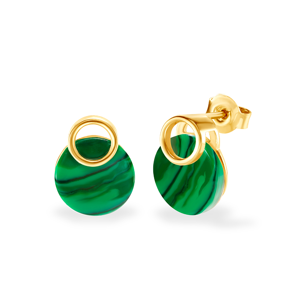 Kolczyki Savicki wykonane ze srebra (próba 925) pozłocone 22-karatowym żółtym złotem. W kolczykach zostały umieszczone dwa malachity o głębokiej zieleni.