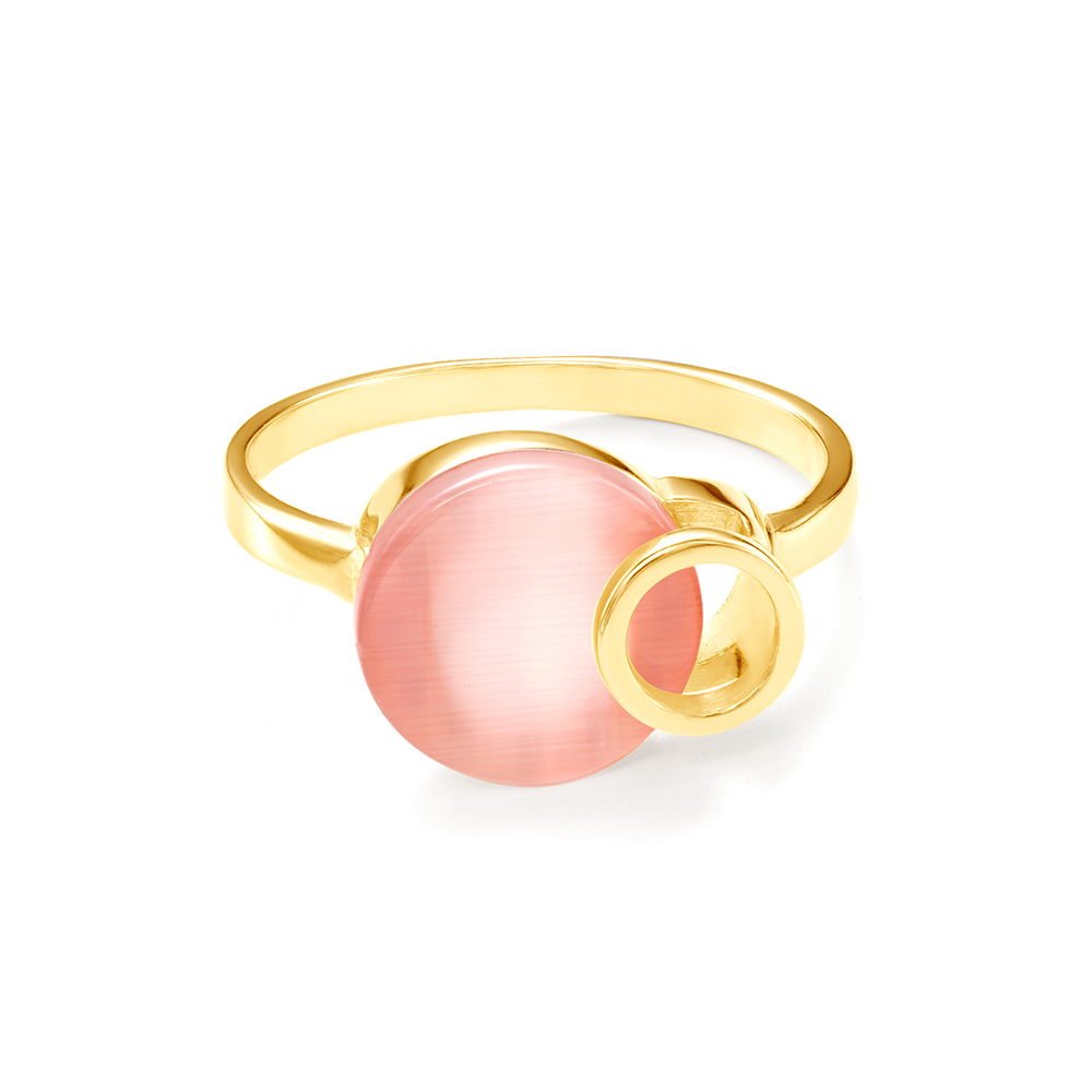 Pierścionek Savicki wykonany ze srebra (próba 925) pozłocony 22-karatowym żółtym złotem. W pierścionku zostało umieszczone różowe kocie oko.