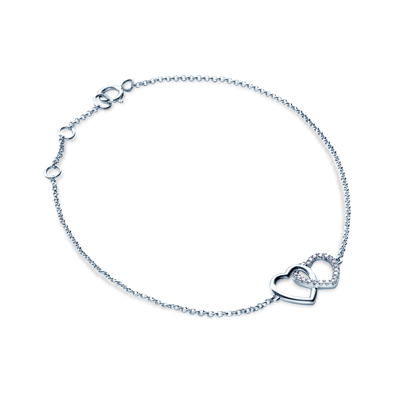 Bransoletka z sercem Savicki wykonana z białego złota (próba 585). W bransoletce osadzono 20 diamentów o łącznej masie 0,06 ct.