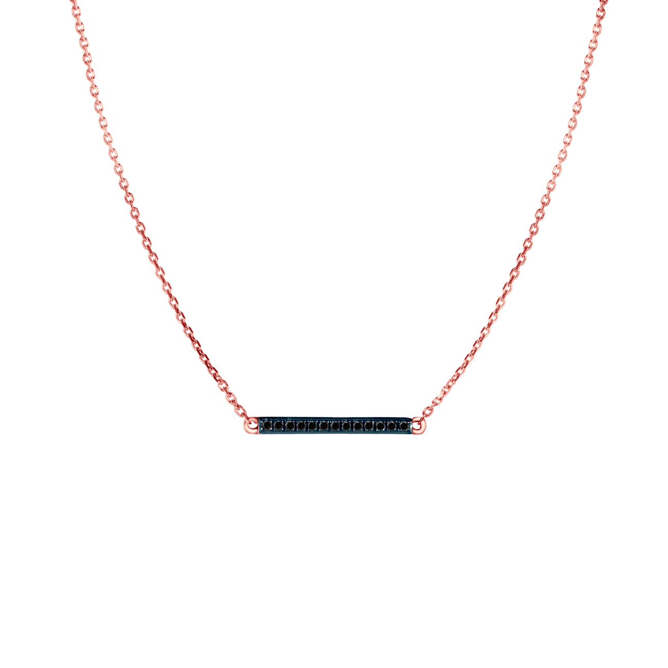 W naszyjniku zostało osadzonych 13 czarnych diamentów o łącznej masie 0,03 ct. Naszyjnik wykonany z różowego złota(próba 585).