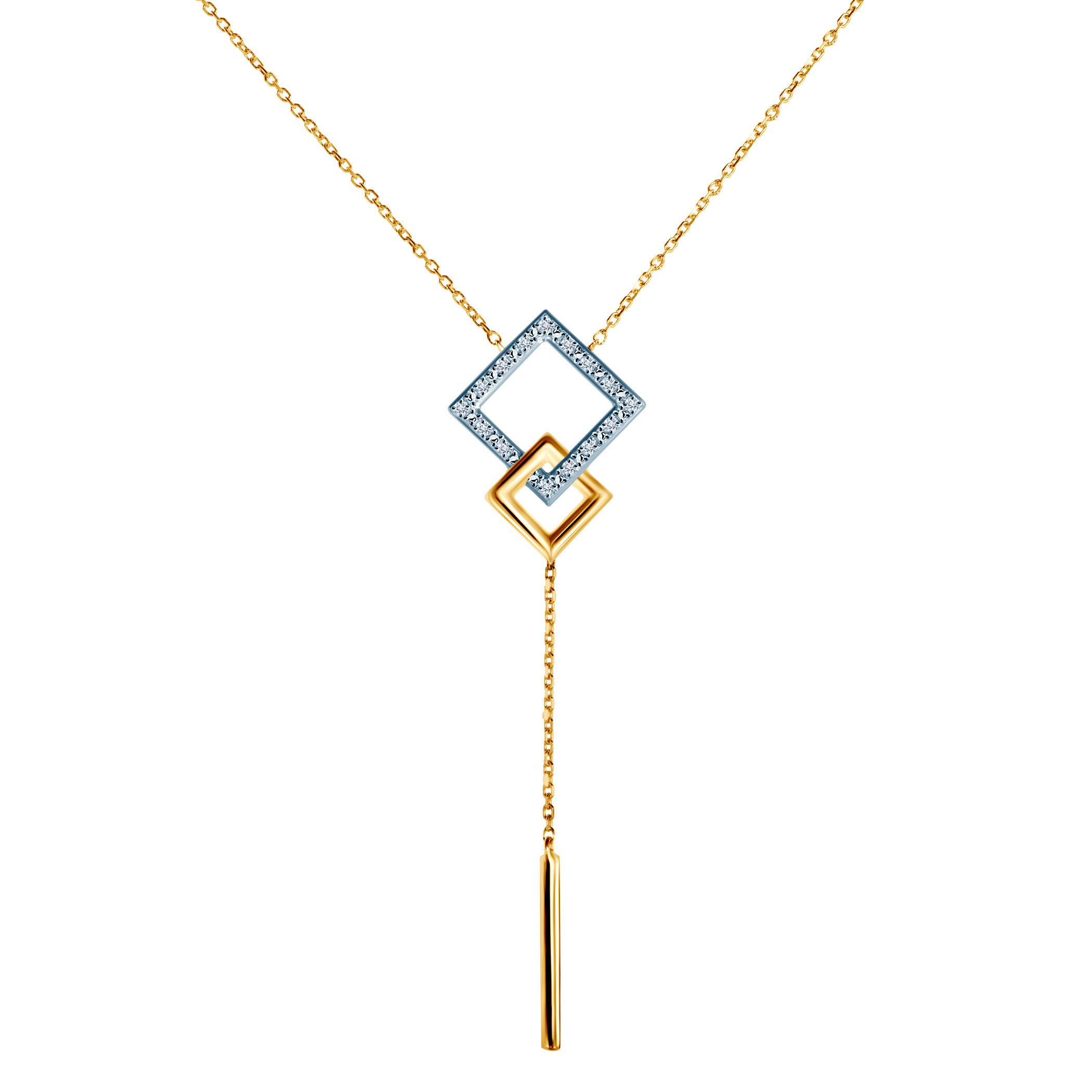 W naszyjniku zostało osadzonych 15 diamentów o łącznej masie 0,04 ct ze szlifem brylantowym. Naszyjnik wykonany z połączenia białego i żółtego złota(próba 585).