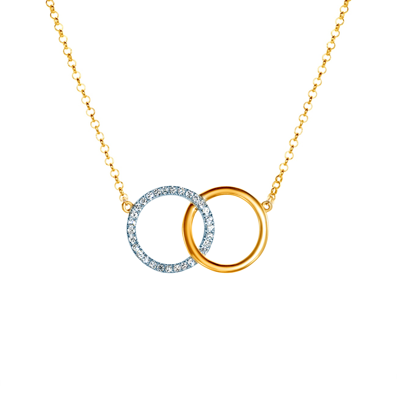 W naszyjniku zostało osadzonych 29 diamentów o łącznej masie 0,09 ct. Naszyjnik wykonany z połączenia białego i żółtego złota(próba 585).