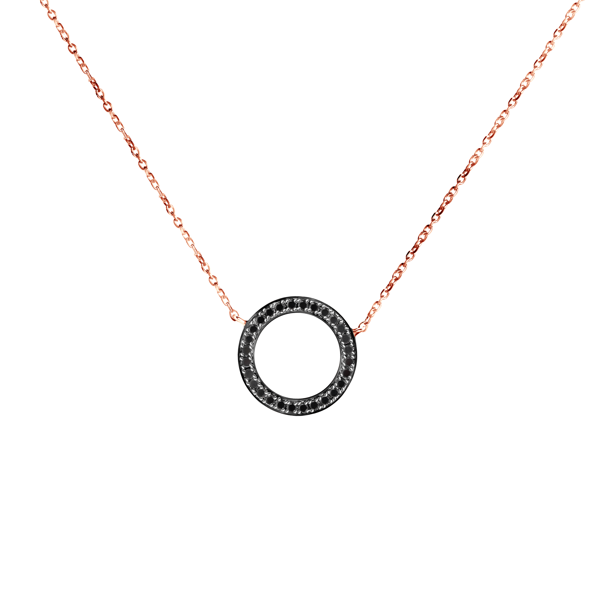 W naszyjniku zostało osadzonych 28 czarnych diamentów o łącznej masie 0,08 ct ze szlifem brylantowym. Naszyjnik wykonany z różowego złota (próba 585).