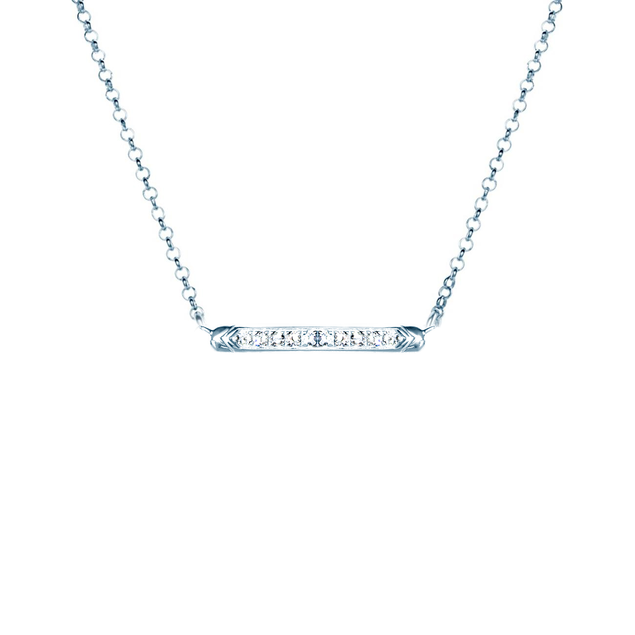 W naszyjniku zostało osadzonych 10 diamentów o łącznej masie 0,04 ct. Naszyjnik wykonany z białego złota (próba 585).