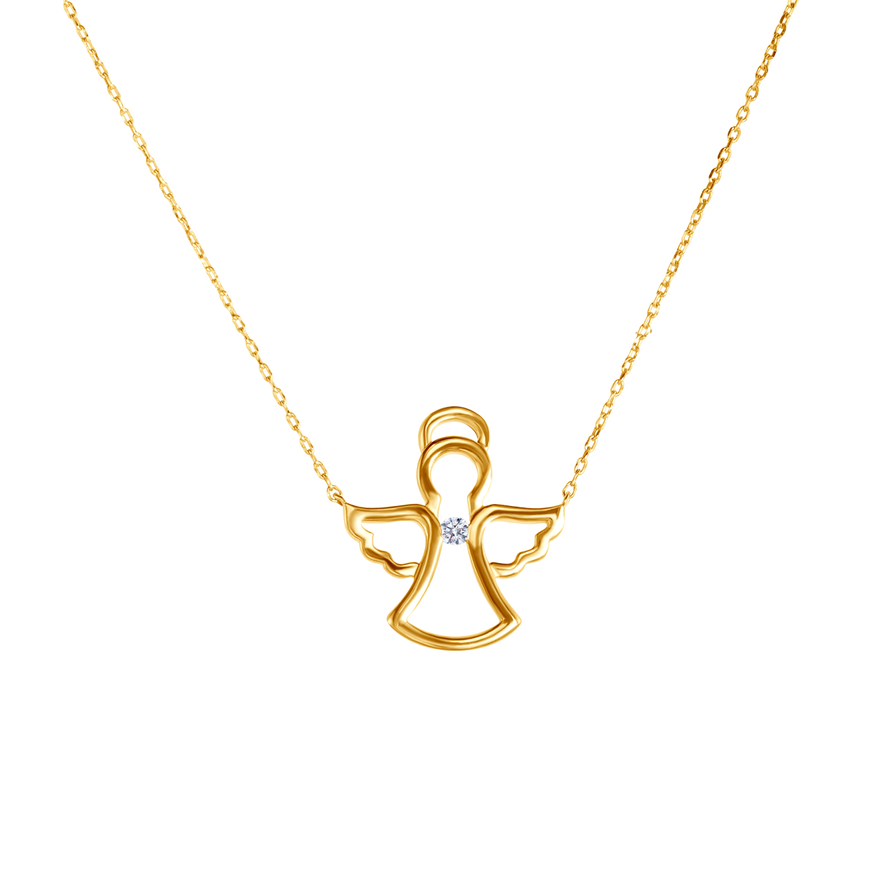 W naszyjniku został osadzony diament o szlifie brylantowym o masie 0,01 ct. Naszyjnik wykonany z żółtego złota(próba 585).