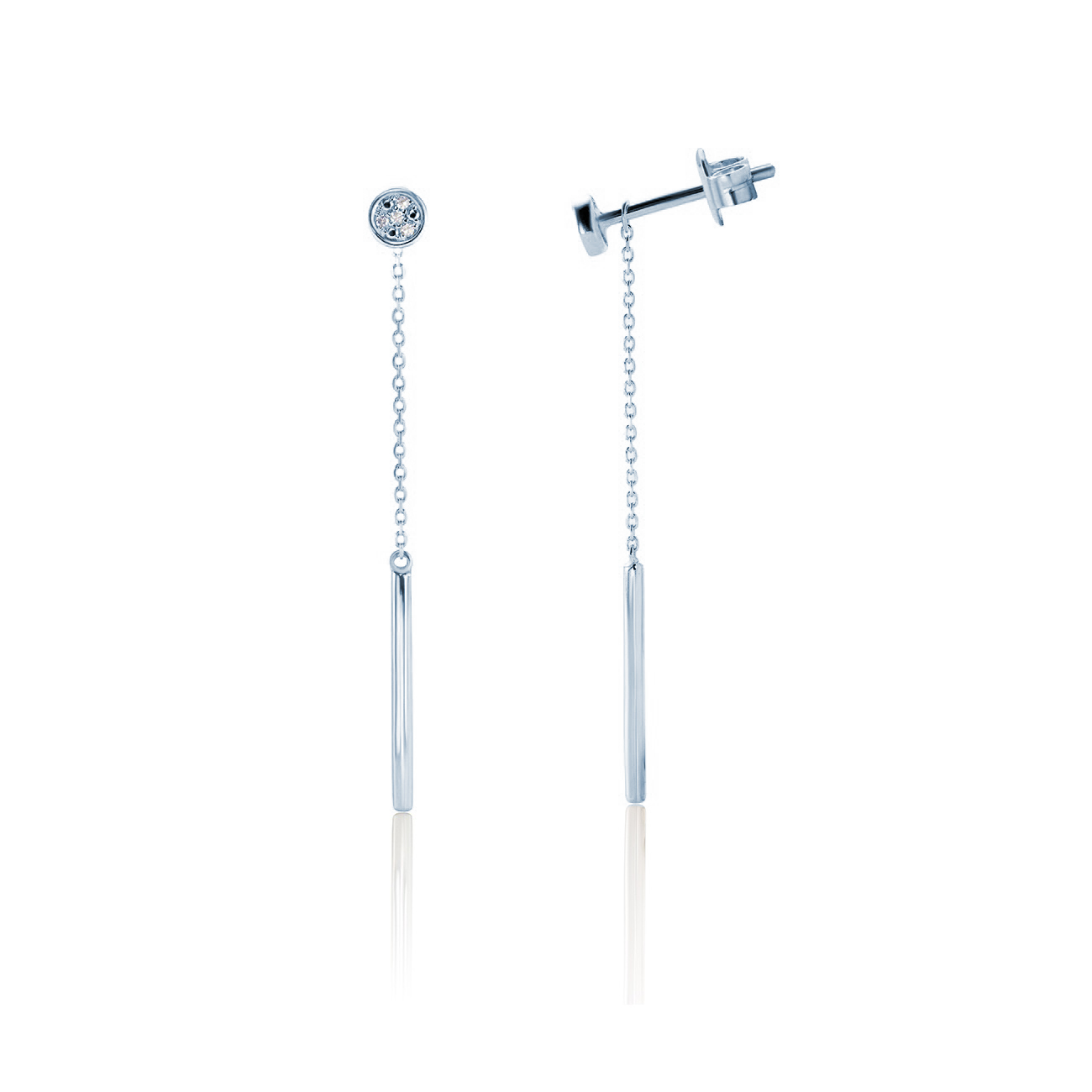 Kolczyki z 8 diamentami o łącznej masie 0,02 ct i szlifie brylantowym, wykonane z 14-karatowego białego złota (próba 585).