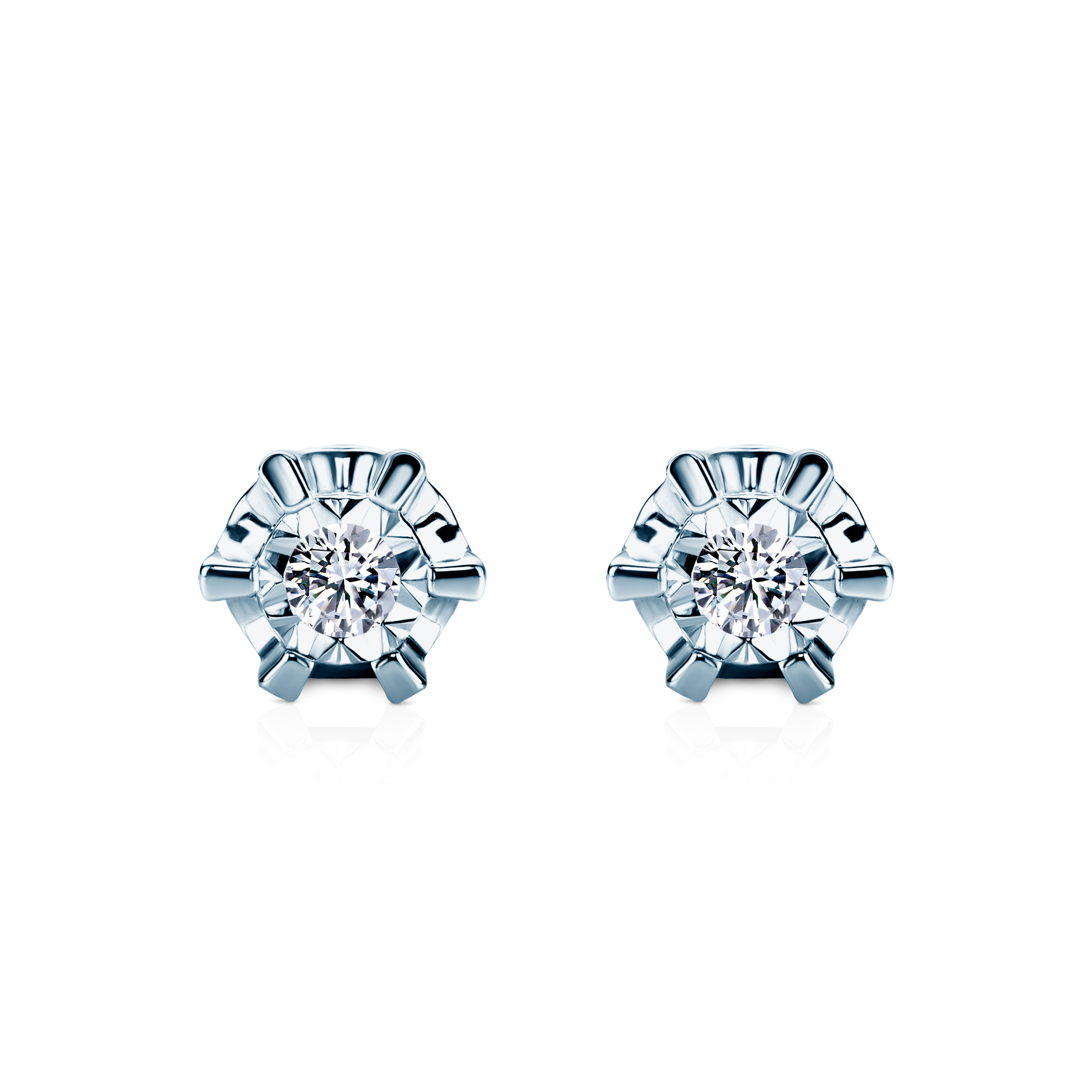 Kolczyki z 2 diamentami o łącznej masie 0,11 ct i szlifie brylantowym, wykonane z połączenia 14-karatowego białego i żółtego złota(próba 585).