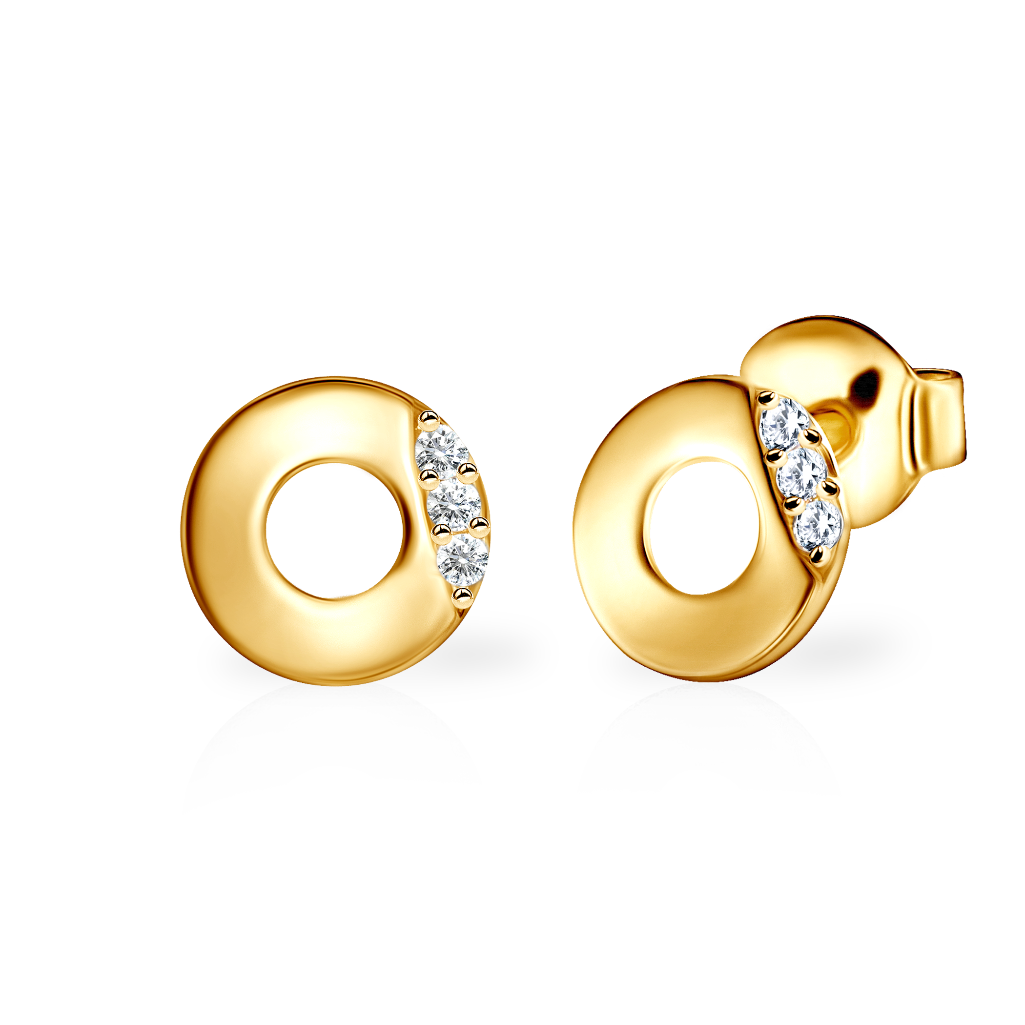 Kolczyki Savicki wykonane z żółtego złota (próba 585). W kolczykach zostało osadzonych 6 cyrkonii o szlifie brylantowym.