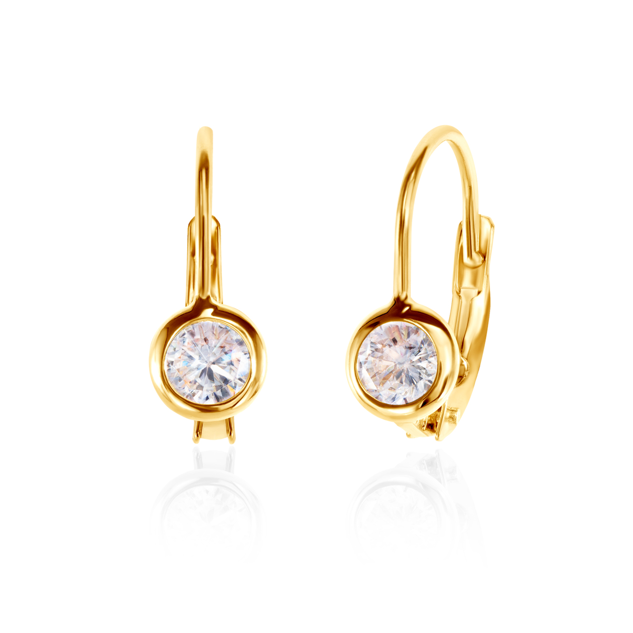 Kolczyki Savicki wykonane z żółtego złota (próba 585). W kolczykach zostały osadzone 2 cyrkonie o szlifie brylantowym.