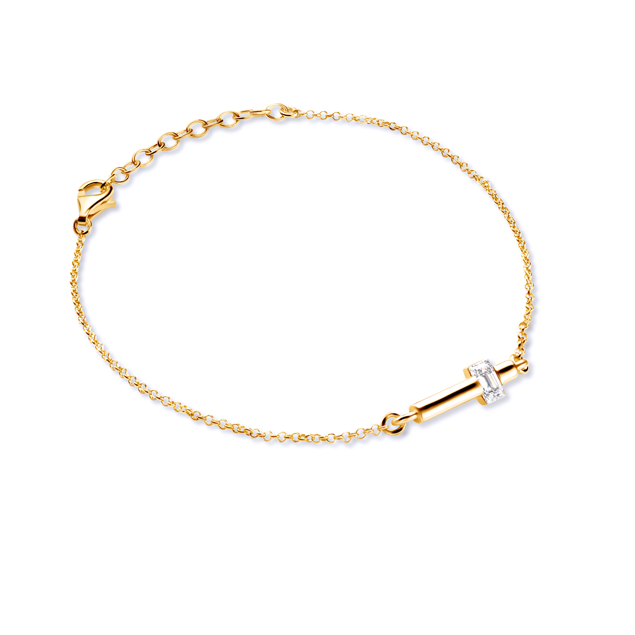 Bransoletka celebrytka Savicki wykonana ze srebra (próba 925) o długości 19 cm, pozłocona 22-karatowym żółtym złotem. W bransoletce została osadzona cyrkonia o szlifie szmaragdowym.