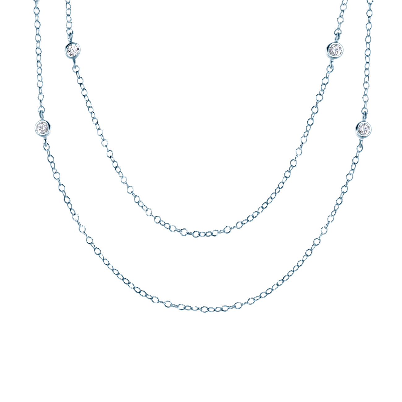 Rodowany łańcuszek wykonany ze srebra (próba 925). W naszyjniku są umieszczone 2,5 mm cyrkonie.