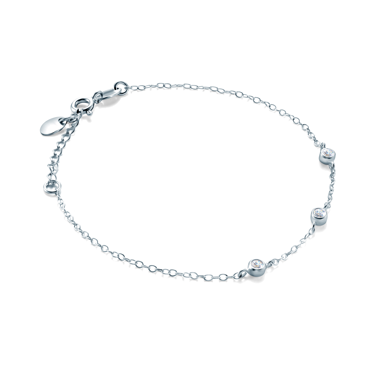 Bransoletka celebrytka wykonana ze srebra (próba 925) pokryta warstwą rodu dla nadania wyjątkowego blasku. W bransoletce zostały umieszczone trzy cyrkonie 2,5 mm o szlifie brylantowym.