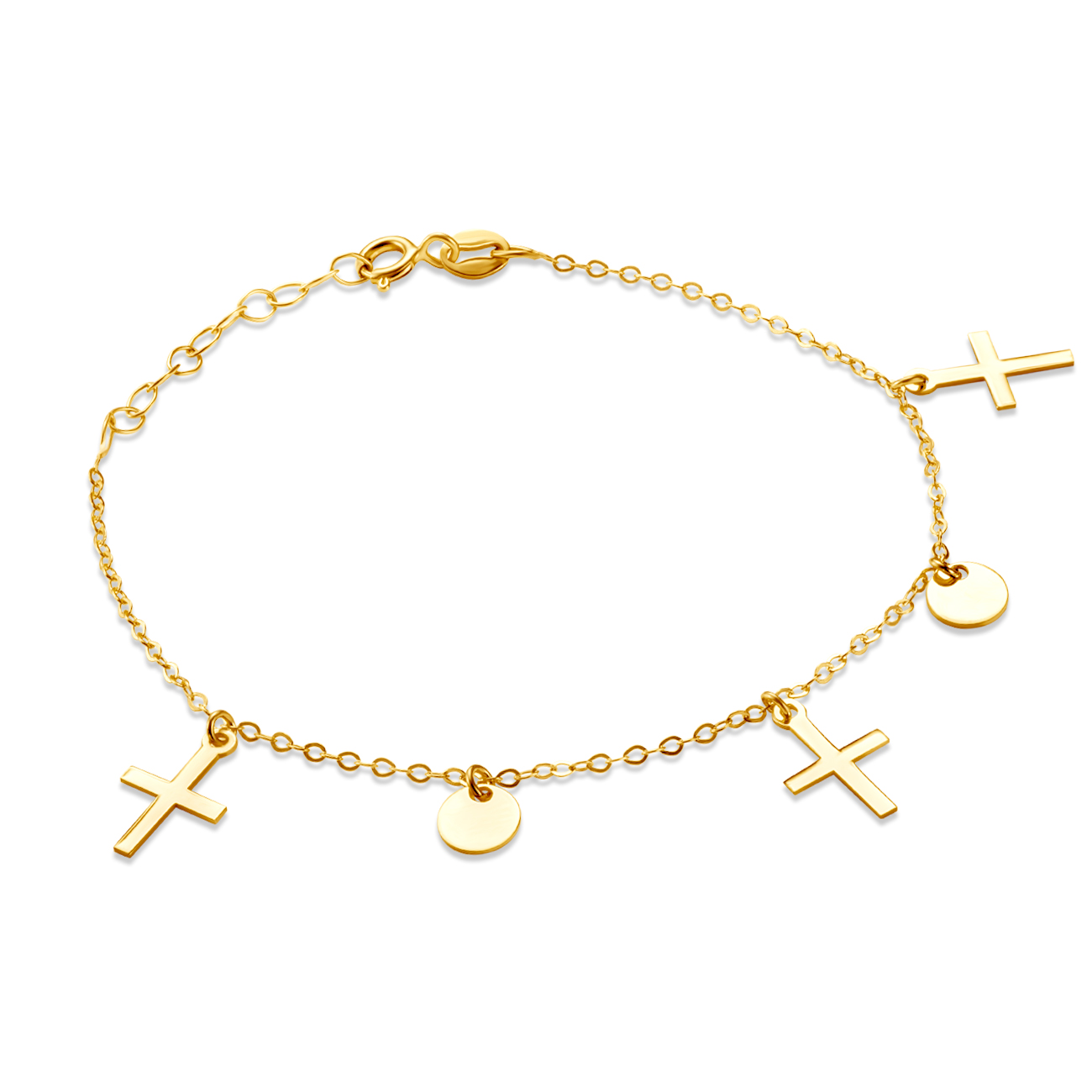 Bransoletka celebrytka krzyżyk Savicki wykonana ze srebra (próba 925) pozłocona 22-karatowym żółtym złotem.