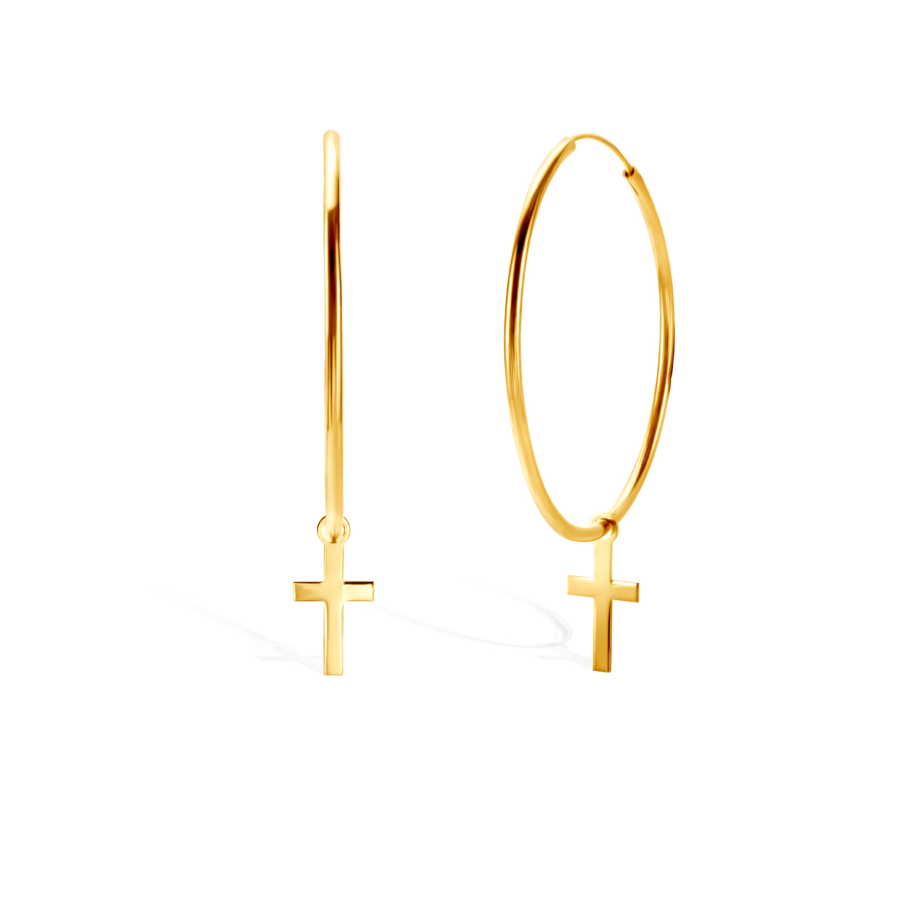 Kolczyki koła z krzyżykiem Savicki wykonane ze srebra (próba 925) pozłocone 22-karatowym żółtym złotem.