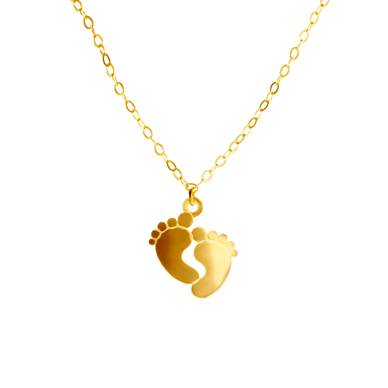 Naszyjnik celebrytka stópki Savicki wykonany ze srebra (próba 925) pozłocony 22-karatowym żółtym złotem.