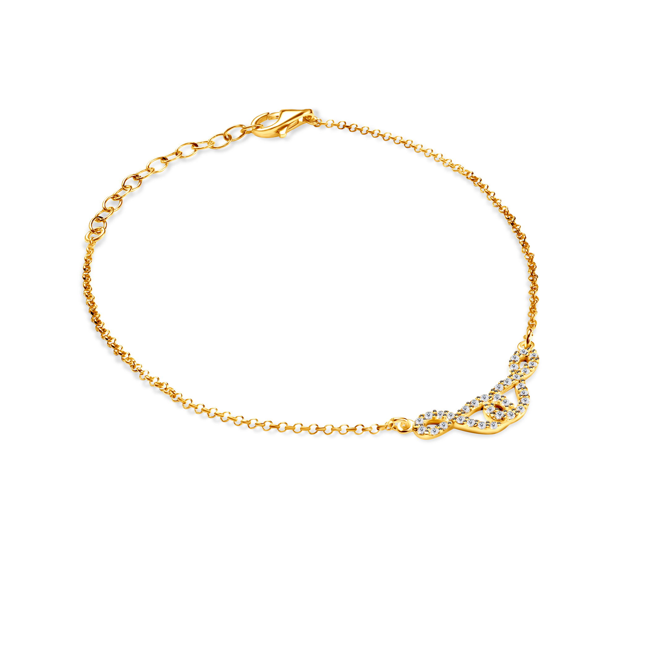 Bransoletka celebrytka Savicki wykonana z 14 karatowego żółtego złota (próba 585). W bransoletce osadzone zostały 32 białe szafiry o łącznej masie 0,32 ct i szlifie brylantowym.