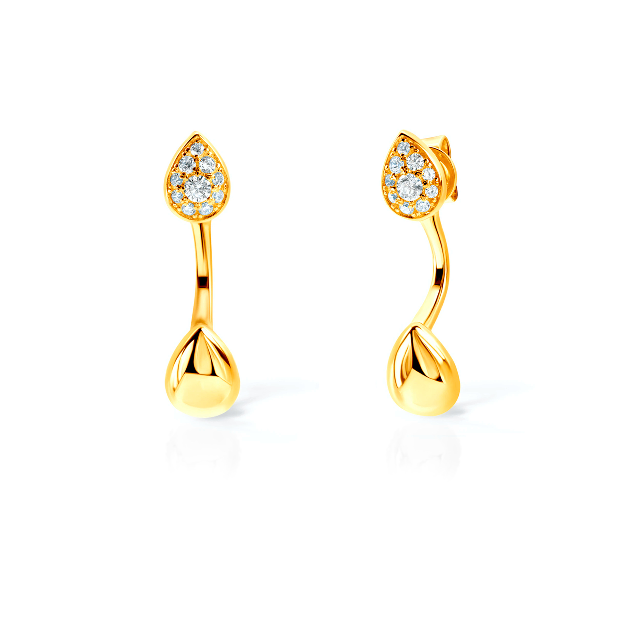 Kolczyki Nature wykonane ze srebra (próba 925) pozłocone 22-karatowym żółtym złotem. W kolczykach osadzonych zostało 20 cyrkonii o szlifie brylantowym.