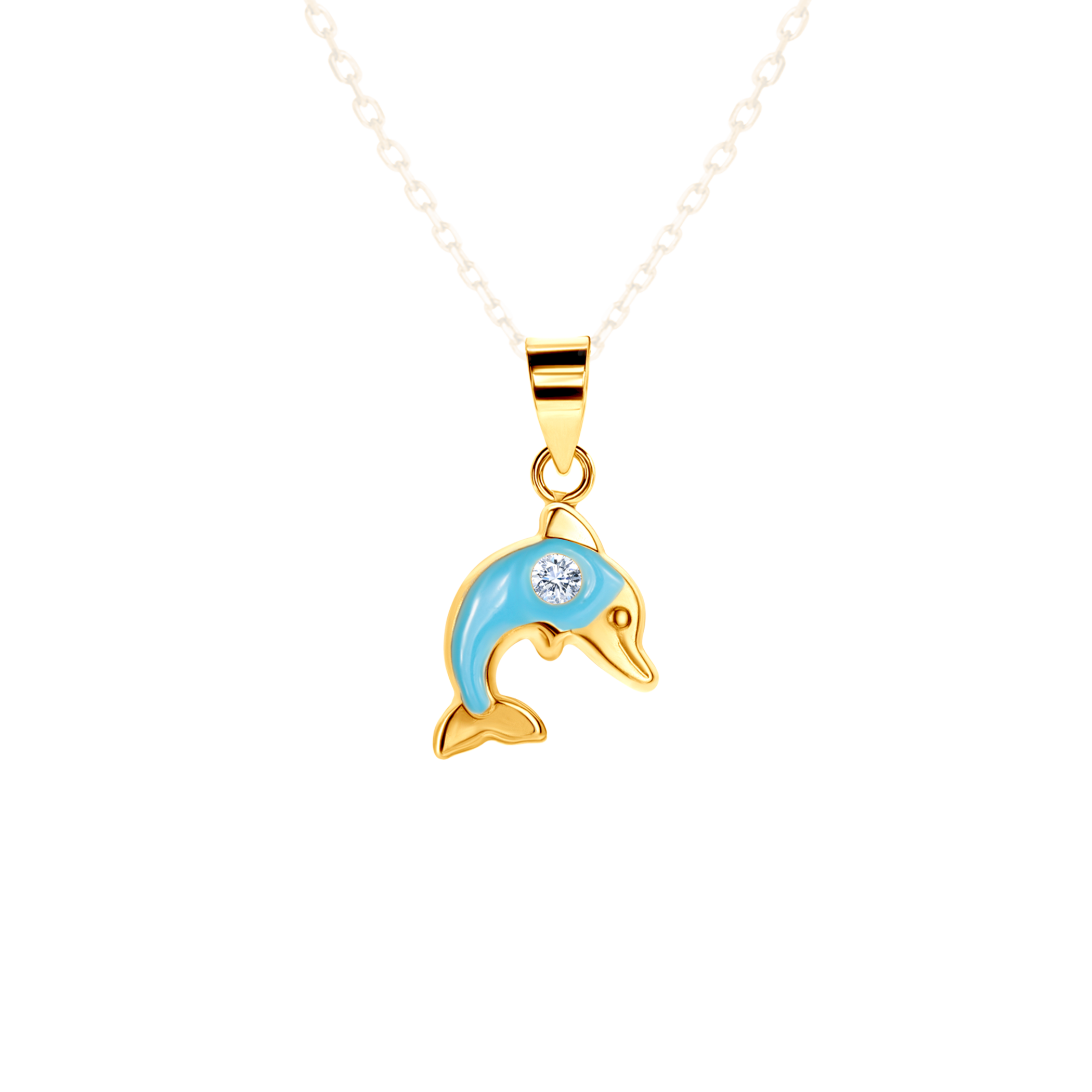 Zawieszka Animals z motywem delfina wykonana z 9-karatowego żółtego złota (próba 375). W zawieszce została osadzona cyrkonia o szlifie brylantowym.