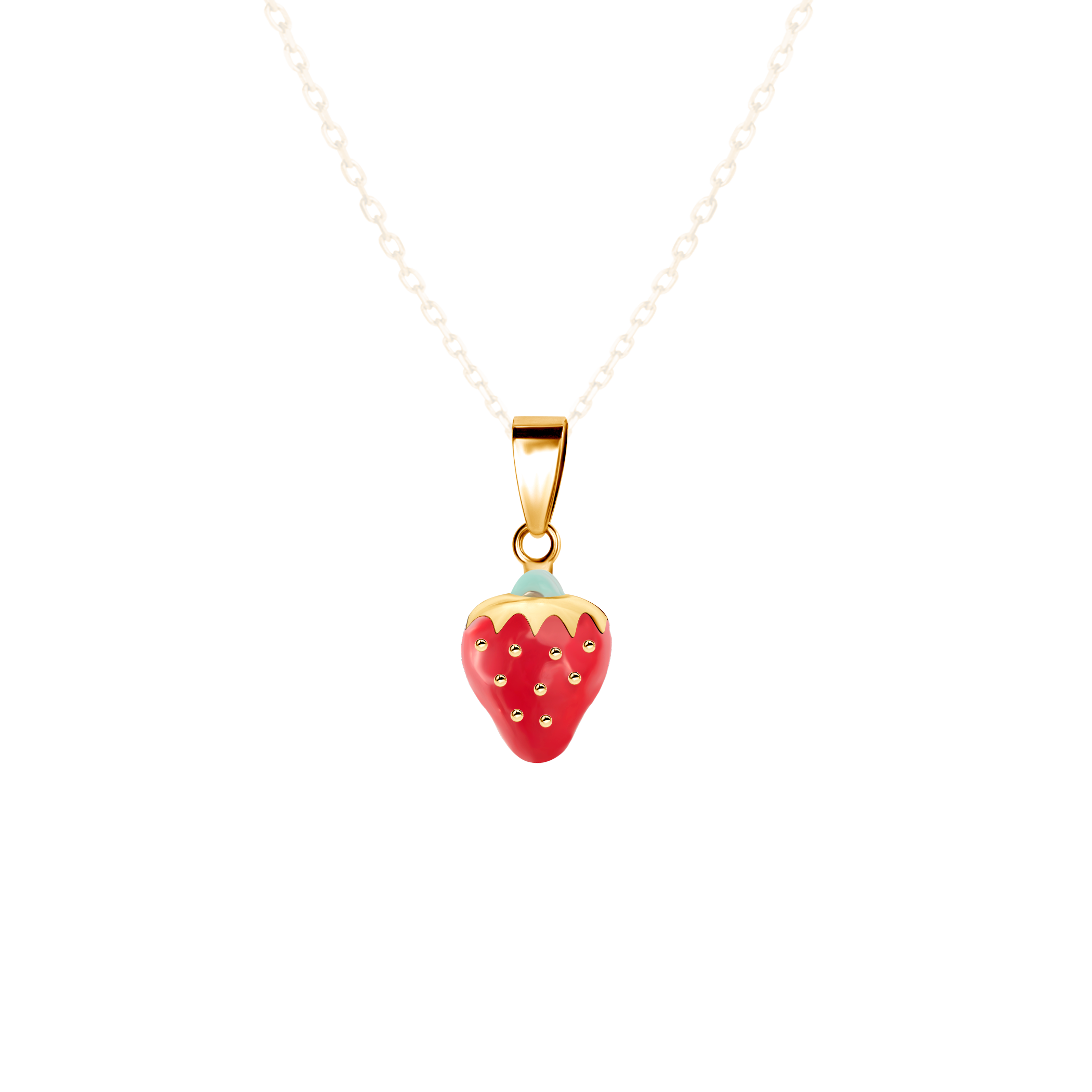 Zawieszka Savicki z motywem truskawki wykonana z 9-karatowego żółtego złota (próba 375).