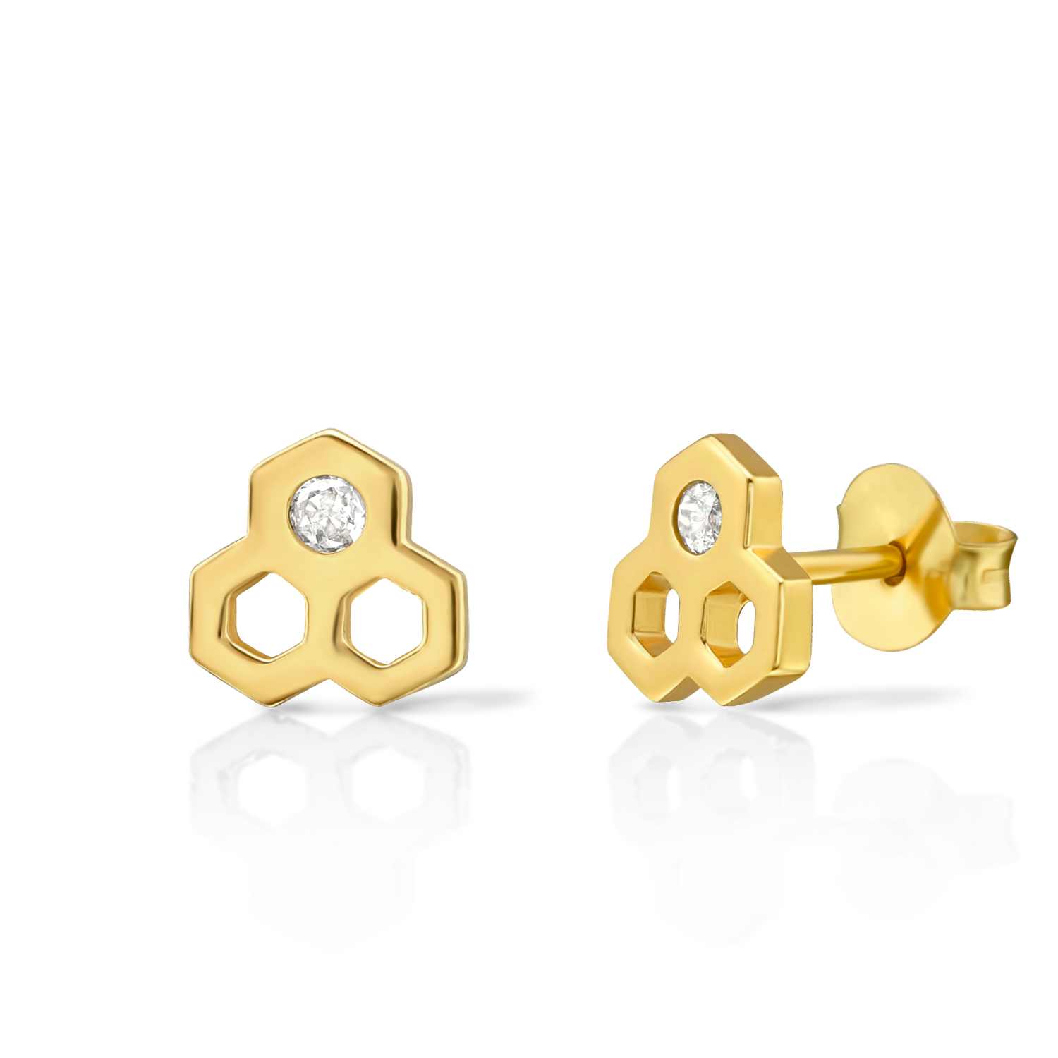 Kolczyki Savicki wykonane ze srebra (próba 925) pozłocone 18-karatowym żółtym złotem. W kolczykach zostały osadzone 2 cyrkonie o szlifie brylantowym.