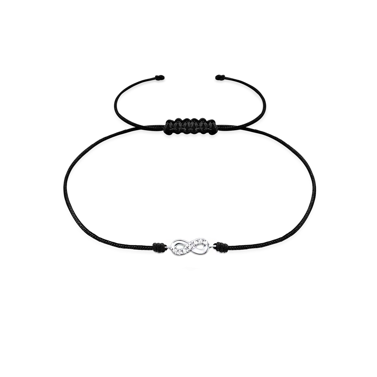 Bransoletka Savicki na rzemyku z motywem nieskończoności wykonana ze srebra (próba 925). W bransoletce osadzonych zostało 12 cyrkonii o szlifie brylantowym.