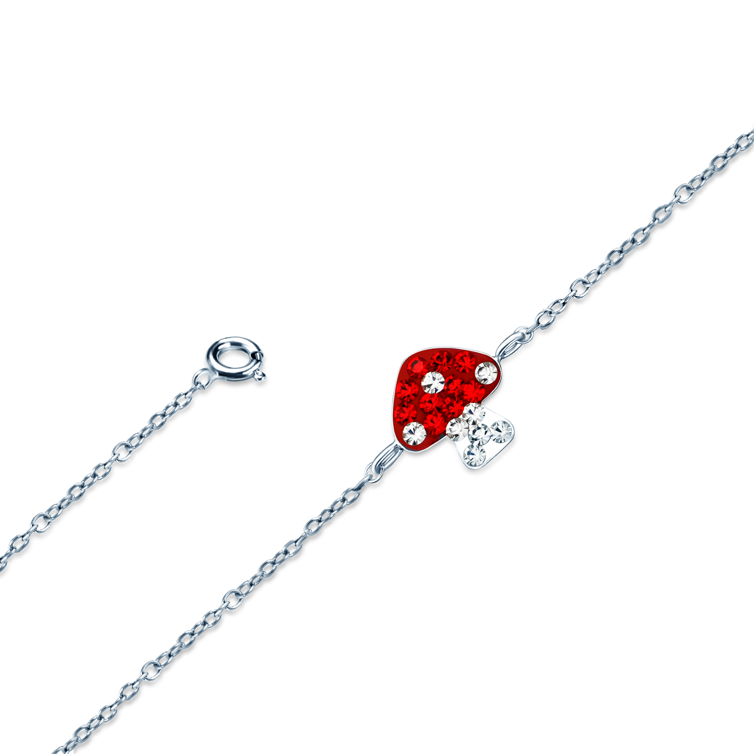 Bransoletka Savicki z motywem grzybka wykonana ze srebra (próba 925). W bransoletce osadzonych zostało 18 cyrkonii o szlifie brylantowym.