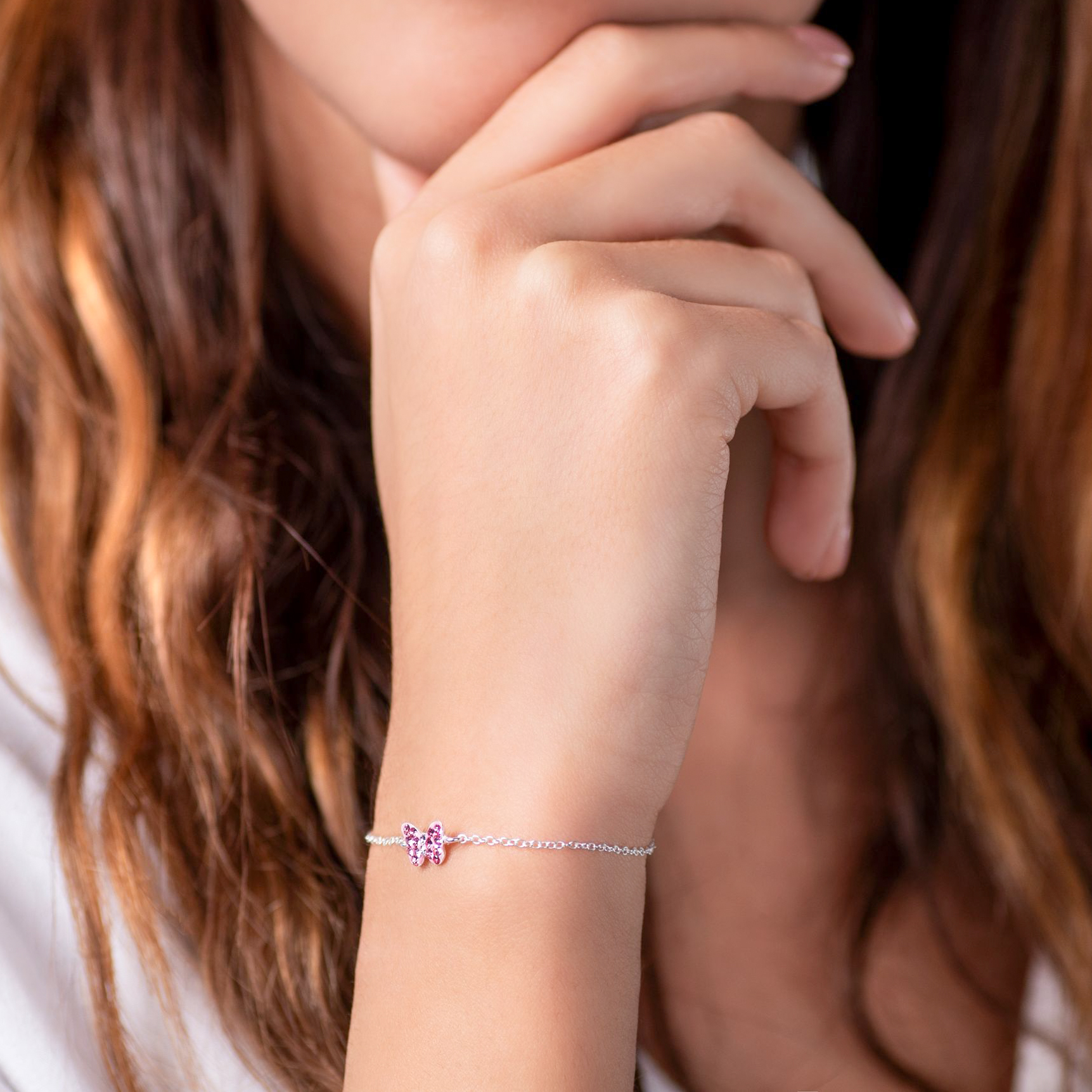 Bransoletka Animals z motywem motyla wykonana ze srebra (próba 925). W bransoletce osadzonych zostało 16 cyrkonii o szlifie brylantowym.
