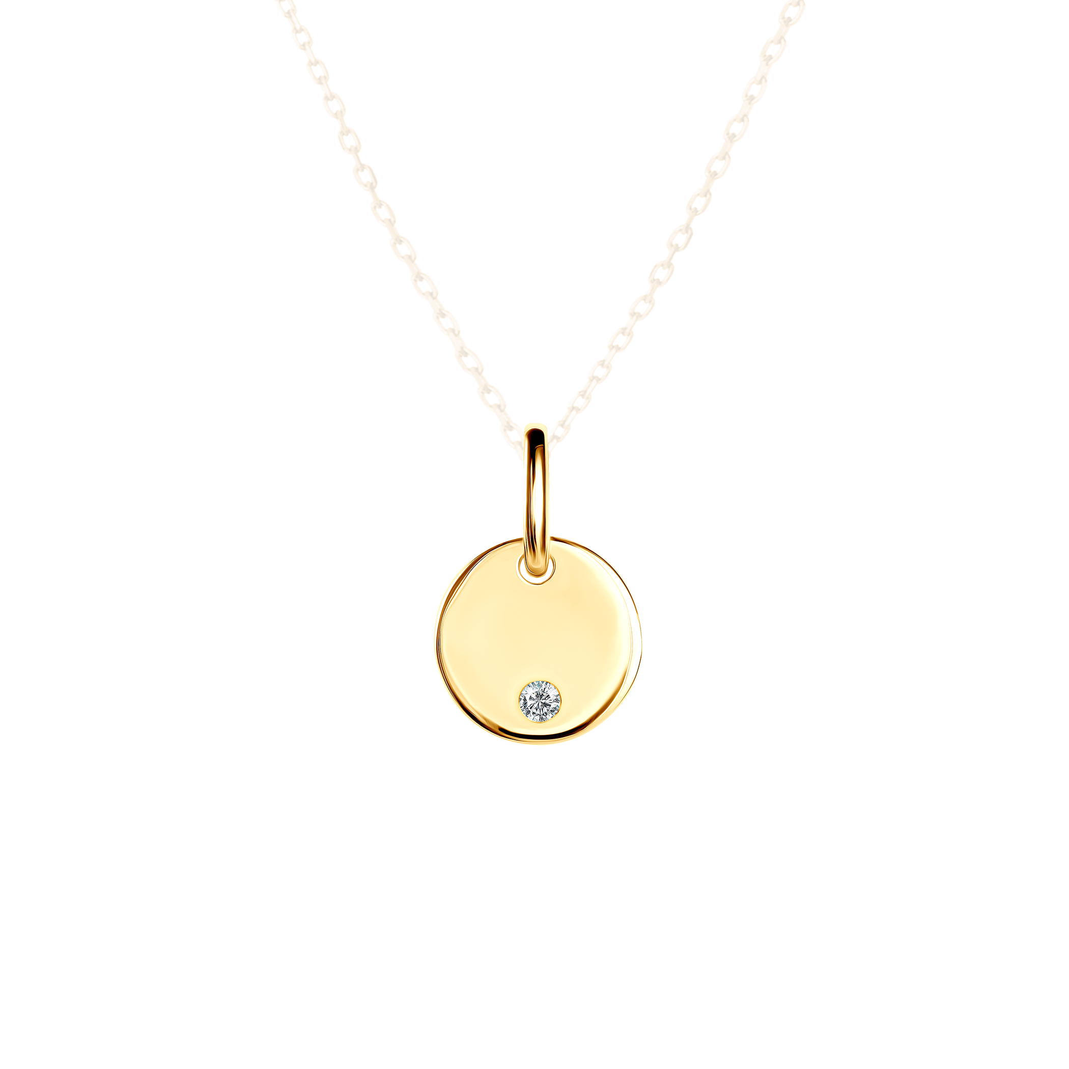 Zawieszka Savicki z możliwością graweru wykonana ze srebra (próba 925) pozłocona żółtym złotem. W zawieszce osadzony został biały szafir o masie 0,03 ct i szlifie brylantowym.