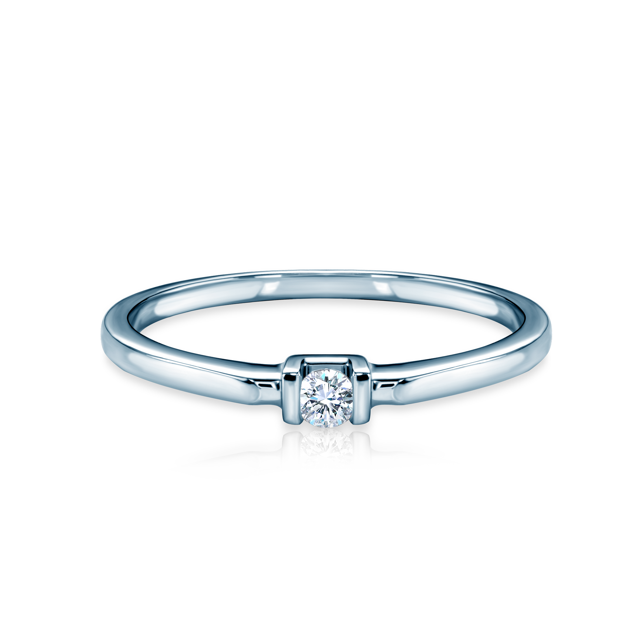 Pierścionek zaręczynowy z diamentem o masie 0,05 ct, szlifie brylantowym, czystości SI2/H wykonany z 14-karatowego białego złota (próba 585).