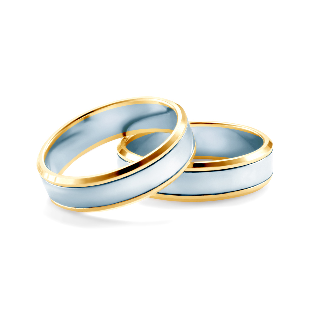 Obrączki ślubne wykonane z połączenia żółtego oraz białego złota (próba 0,333/0,585/0,750).