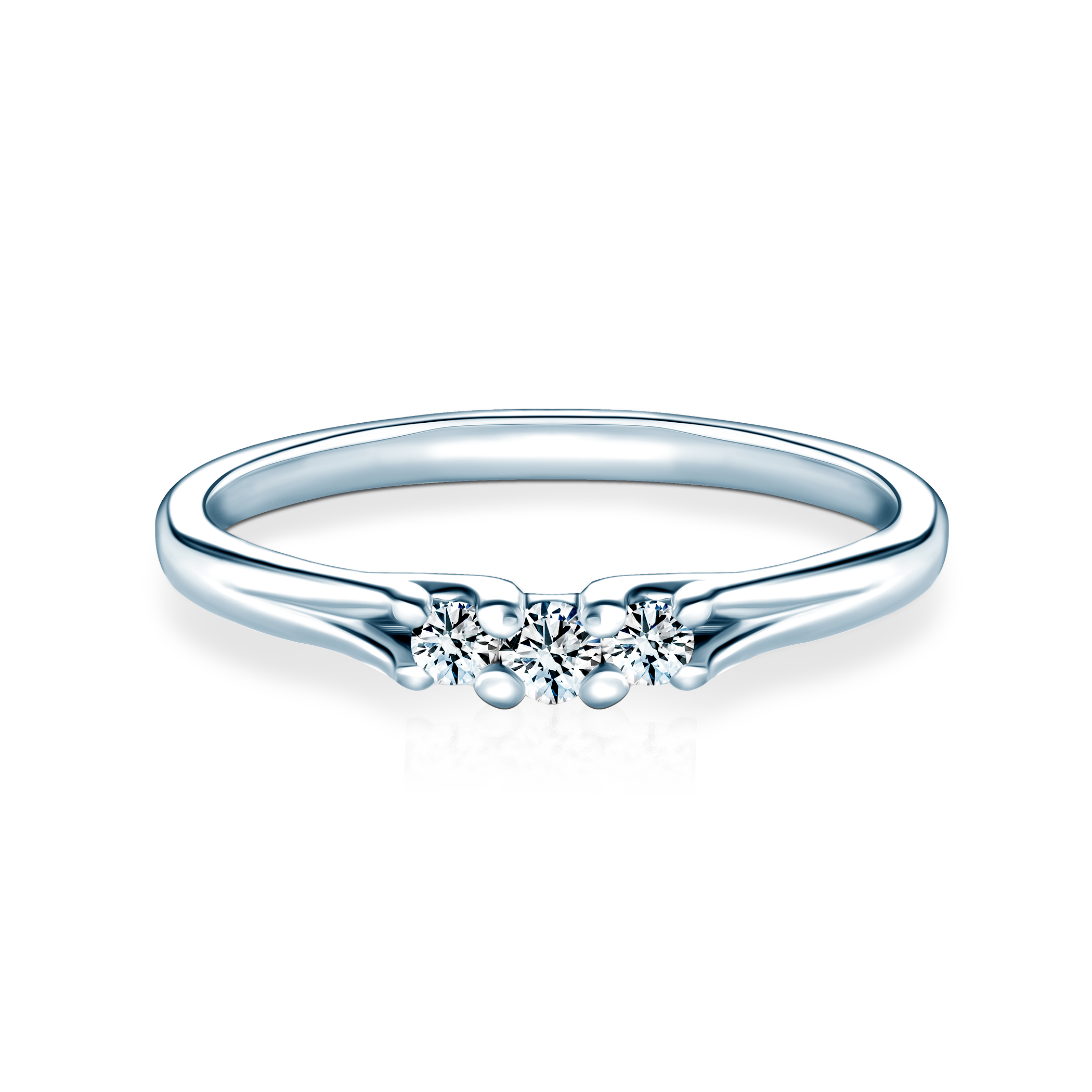 Pierścionek zaręczynowy z 3 diamentami o łącznej masie 0,12 ct, szlifie brylantowym, czystości SI2/H wykonany 14-karatowego białego złota (próba 585).