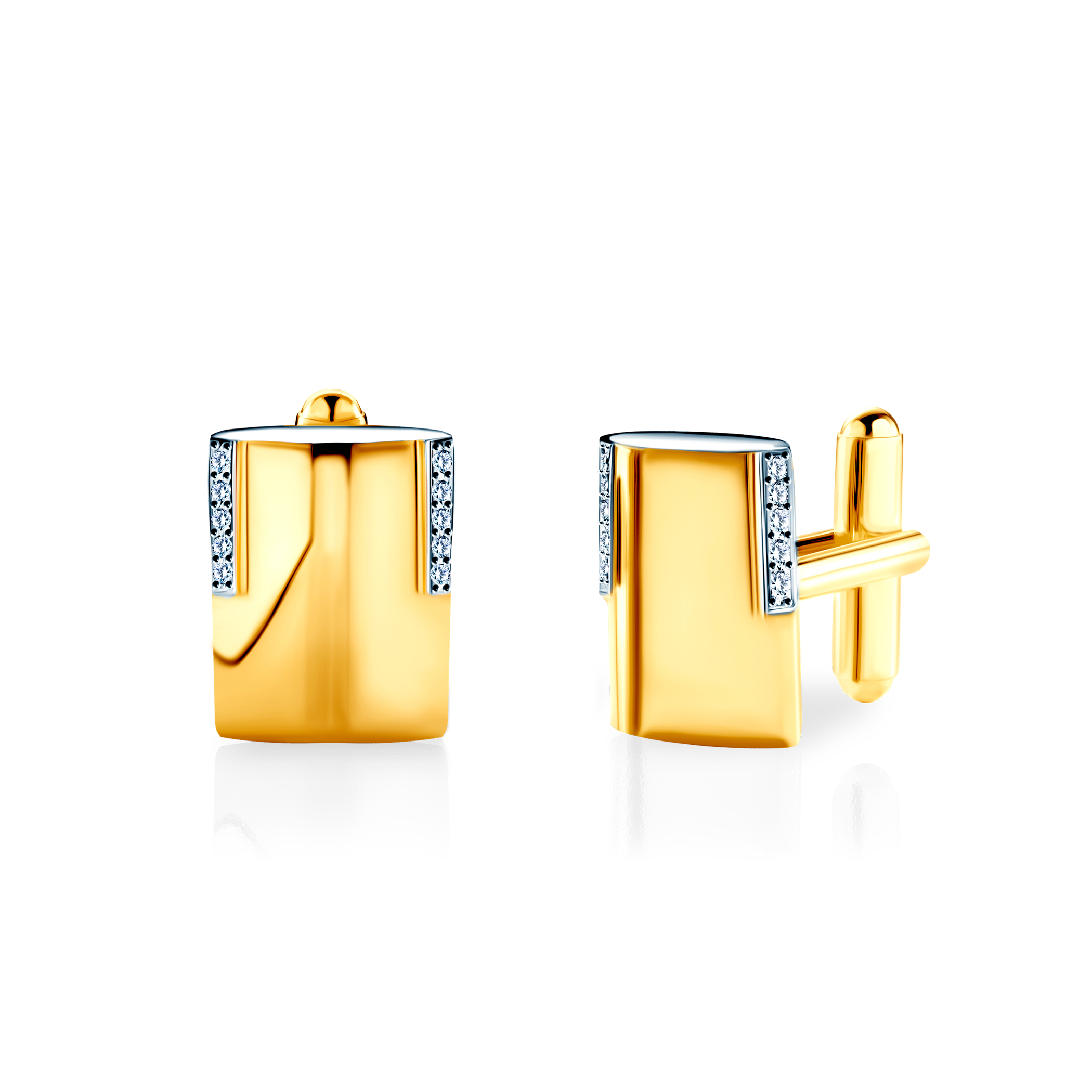 Spinki do mankietów wykonane z 14 karatowego żółtego złota (próba 585). W spinkach osadzonych zostało 20 diamentów o łącznej masie 0,20ct, czystości SI2/H i szlifie brylantowym.