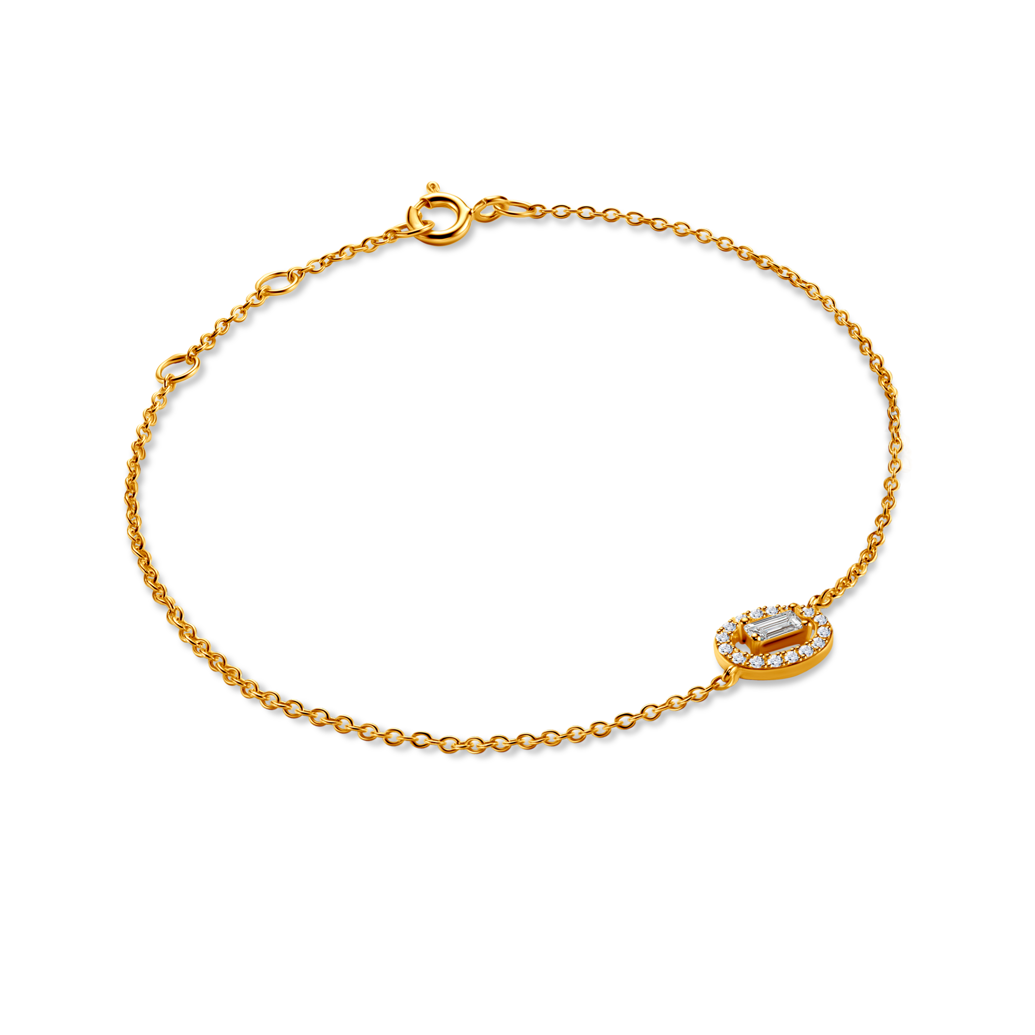 Bransoletka celebrytka Savicki wykonana ze srebra (próba 925) pozłocona żółtym złotem. W bransoletce osadzonych zostało 17 cyrkonii o szlifie brylantowym i szmaragdowym.