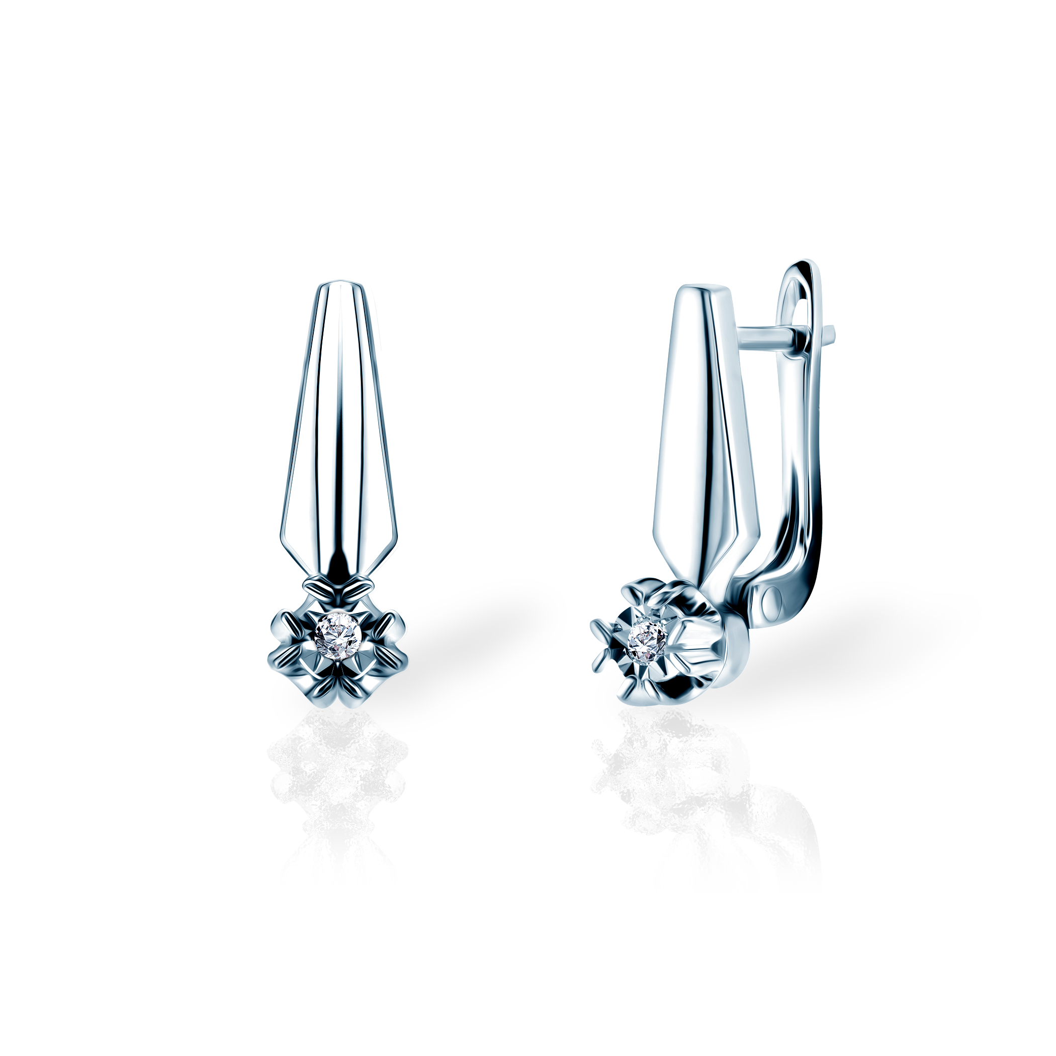 Kolczyki z 2 diamentami o łącznej masie 0,03 ct i szlifie brylantowym, wykonane z 14-karatowego białego złota (próba 585).