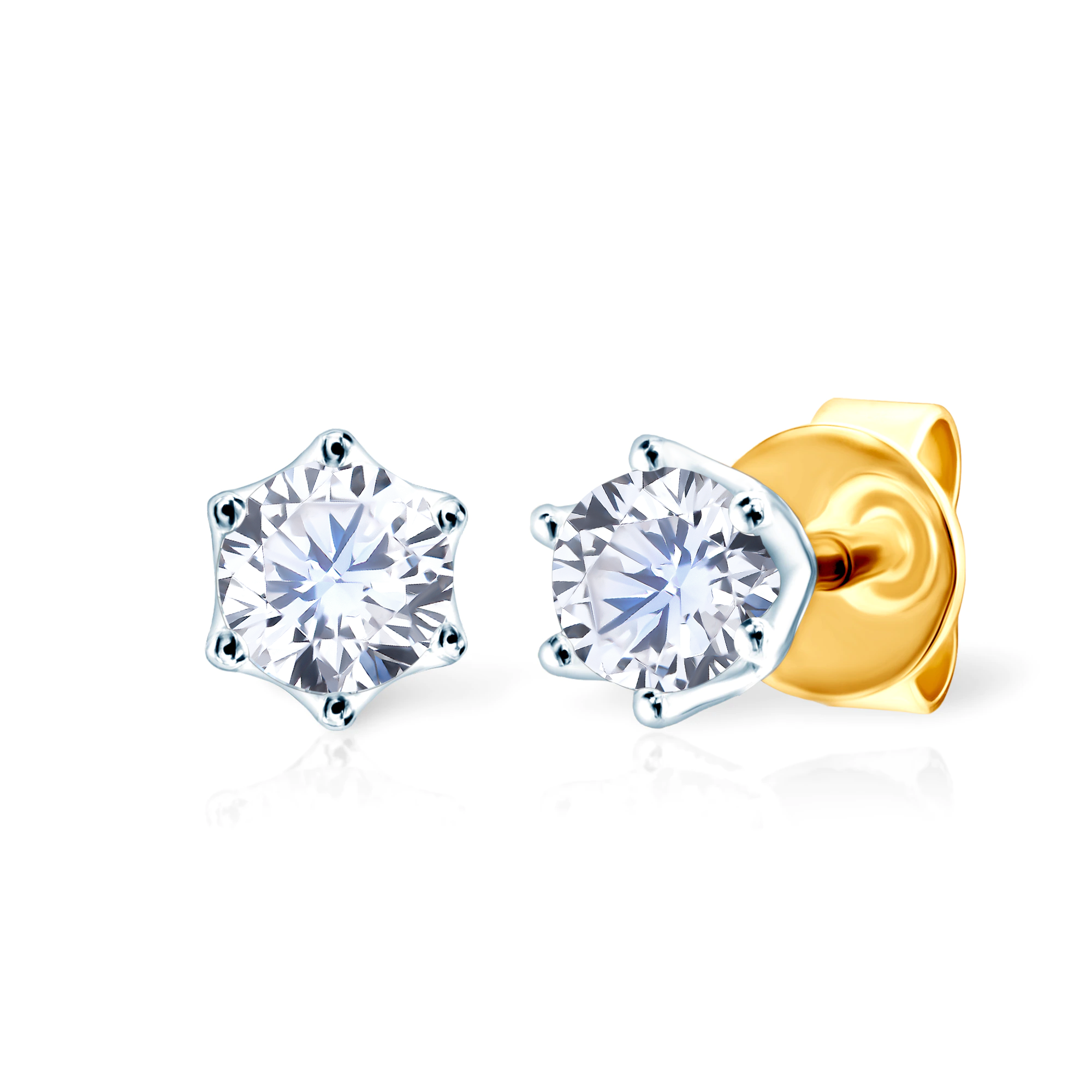 Kolczyki wykonane z 14-karatowego żółtego i białego złota (próba 0,585). W kolczykach zostały osadzone 2 diamenty o szlifie brylantowym, czystości SI2/H, o łącznej masie 0,17ct.