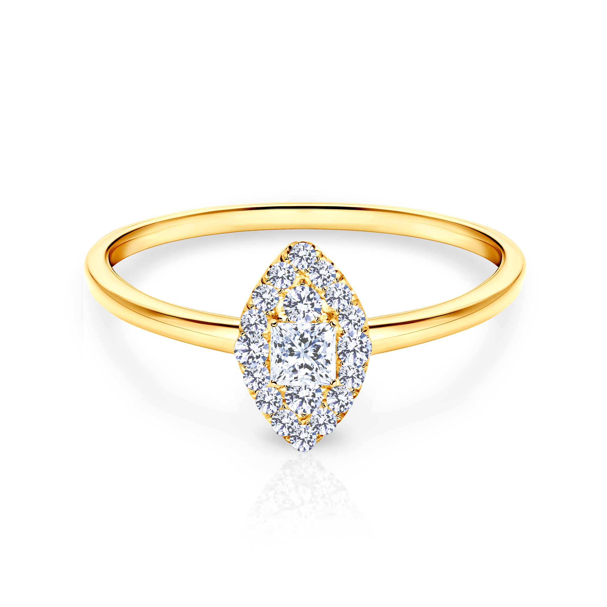 Pierścionek z diamentami wysokiej czystości SI2/H o łącznej masie 0,26ct. Wykonany z 14-karatowego żółtego złota (próba 0,585).